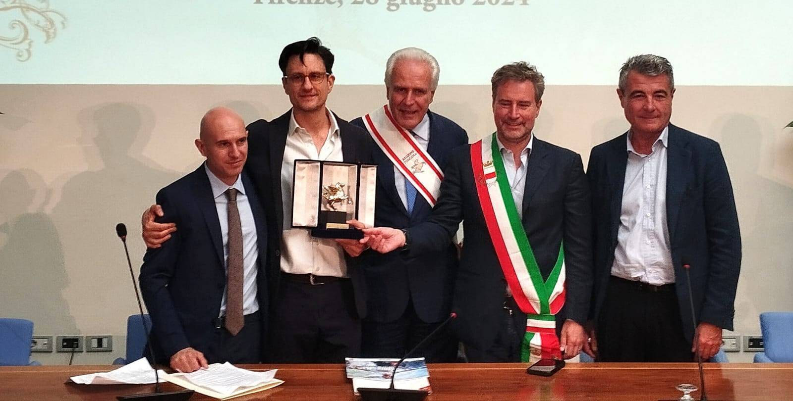 La Medaglia d'Oro Pegaso, infatti, viene conferita dalla Giunta regionale Toscana quale segno di apprezzamento per coloro che si sono distinti nell'ambito della loro attività svolta nel territorio della nostra regione. In essa viene riprodotta la figura del cavallo alato Pegaso, eletto a simbolo della Regione Toscana già a partire dalla prima legislatura, tratto, e in parte modificato, da una moneta attribuita a Benvenuto Cellini, oggi conservata al Museo Nazionale del Bargello di Firenze.