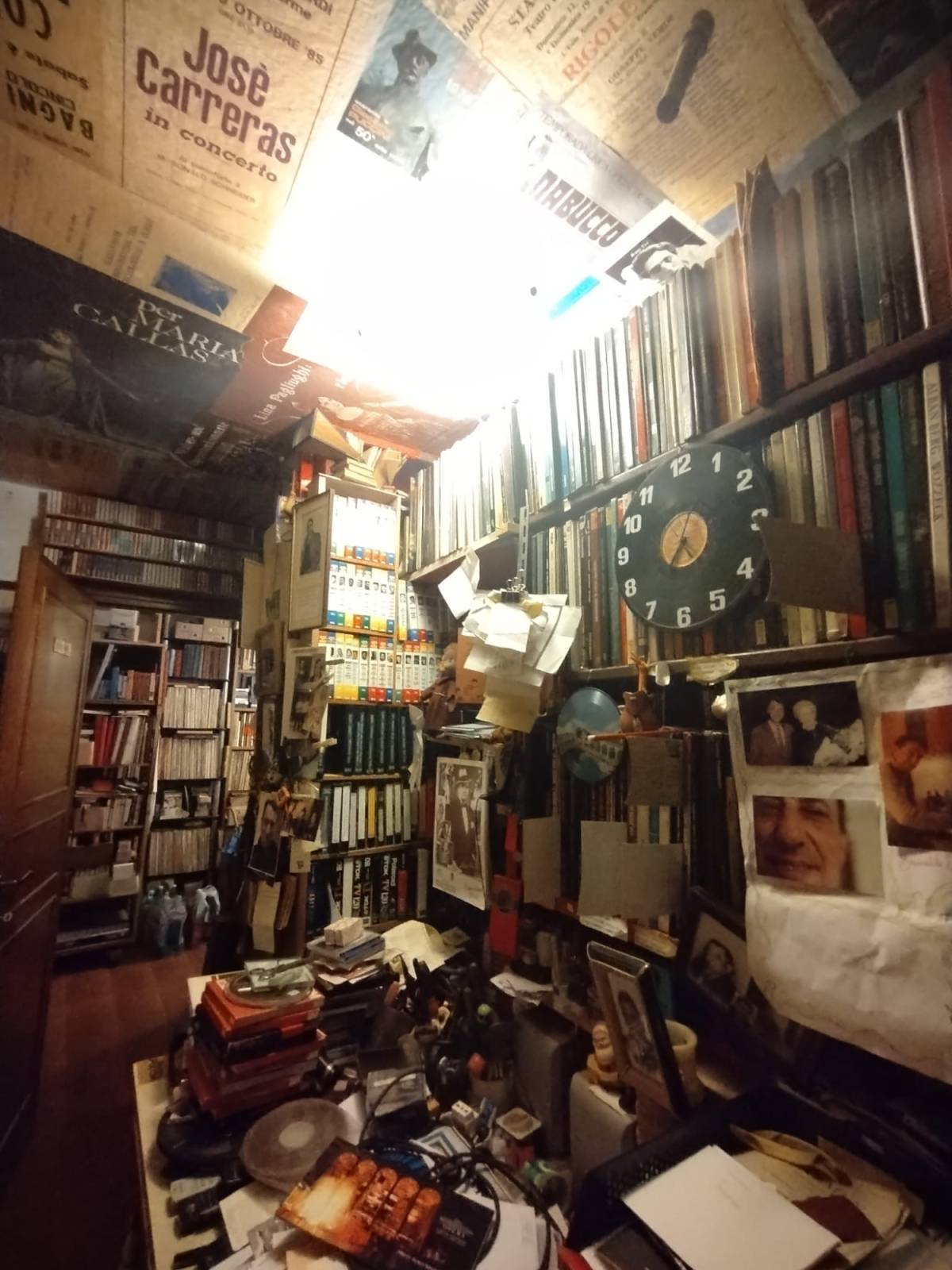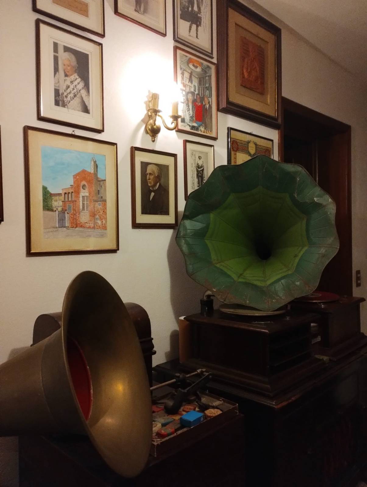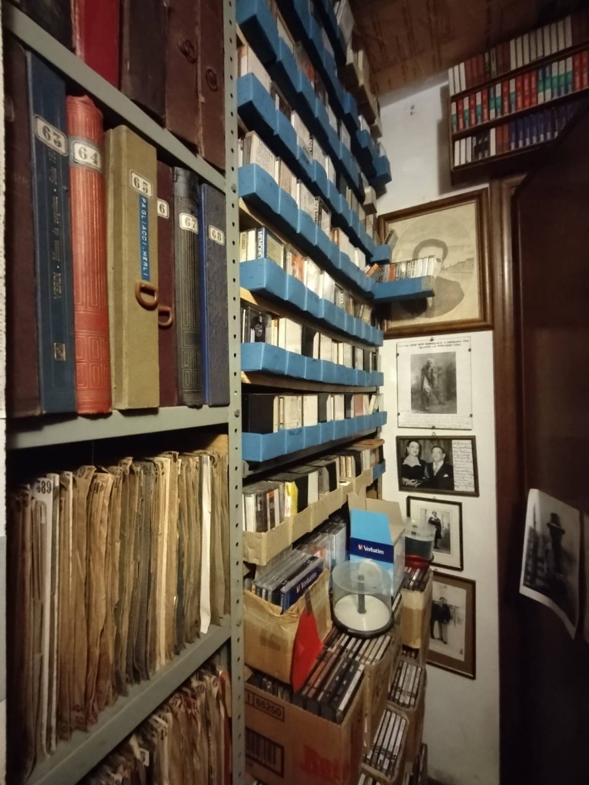Più che una stanza, uno scrigno prezioso. Un angolo di paradiso per i collezionisti, un tempio sacro per gli amanti della musica. Entrare è come fare un tuffo nel passato. Migliaia di dischi a 78 giri, grammofoni a tromba e a cilindro della Edison, registrazioni a nastro, videocassette, audiocassette, cd, opere liriche complete, dischi rarissimi, dischi Pathé… Un tesoro inestimabile.