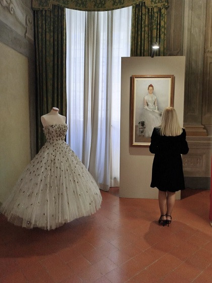 Al centro dell’esposizione si collocano due opere emblematiche: il Ritratto della contessa Luisa Giustiniani (1890 circa), opera del pittore ferrarese Alberto Pisa, (Collezione Fondazione Cassa di Risparmio di Lucca) e un sontuoso abito da gran sera, autentico capolavoro sartoriale, confezionato per una nobildonna presente all’incoronazione della Regina Elisabetta II d’Inghilterra nel 1953.La maestosità della gonna e la rigorosa architettura del corpetto traducono, nella materia, lo stesso senso di equilibrio e raffinatezza che permea il ritratto, rivelando il linguaggio condiviso tra pittura e moda: ricerca, evocazione e sofisticata costruzione della forma.