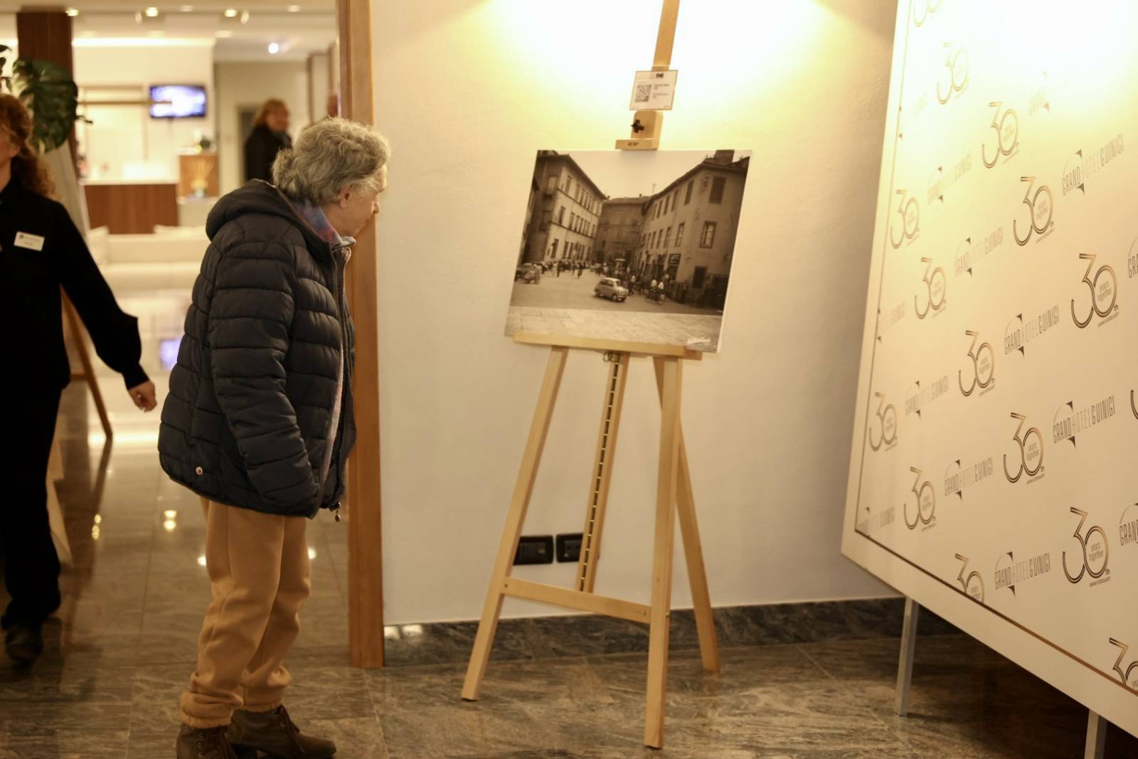 “Il mercato contadino con i “i barròcci” furi porta Santa Maria nel 1957, la Lucchese in serie A nel 1949, la storica visita del 1989 di Papa Giovanni Paolo II, appena atterrato in elicottero all’ex campo balilla, ma anche le foto di Piazza Napoleone, deserta, durante il lockdown - ci dice Mimmo – sono alcune delle dodici immagini che abbiamo scelto. Abbiamo dovuto fare una grandissima selezione tra tutte quelle che abbiamo nel nostro archivio”. Alcide tra l’altro, ci ricorda Mimmo, e per quanti non lo sapessero, è stato il primo imprenditore a Lucca che, il primo maggio del 1949, ha dato alla sua attività il proprio nome di battesimo. “Vorrei ringraziare il Grande Hotel Guinigi – conclude Mimmo – per averci dato questa opportunità che ritengo valida ed accattivante e che potremo esportare in altre situazioni”. Irene Luvisi, General manager del Grand’Hotel Guinigi, è entusiasta di questo bellissimo progetto che rientra tra quelli messi in programma per questo importante anniversario. “Sono felice di fare entrare Lucca all’interno del nostro albergo dove gravitano tantissime perone e di tutte le nazionalità. Ciò mi permette di far vedere Lucca com’era prima e come è oggi; un percorso storico tra piazze, eventi e persone”. Il Grande Hotel Guinigi lancia un progetto innovativo che crea un connubio tra tradizione ed innovazione grazie alla collaborazione delle eccellenze del territorio. “In tal senso vorrei ringraziare Roberto e Tommaso Giomi ed Ilaria Maraviglia – conclude Irene Luvisi – che hanno curato la parte del QR Code, del sito web e di tutta la struttura digitale”. A partire dalla giornata di domani sarà possibile visitare, ad ingresso gratuito e senza prenotazione, la mostra nelle sale e nei corridoi del Grande Hotel Guinigi ma anche accedendo al sito web, tramite PC o smatphone, nell’area dedicata Arte in Hotel.