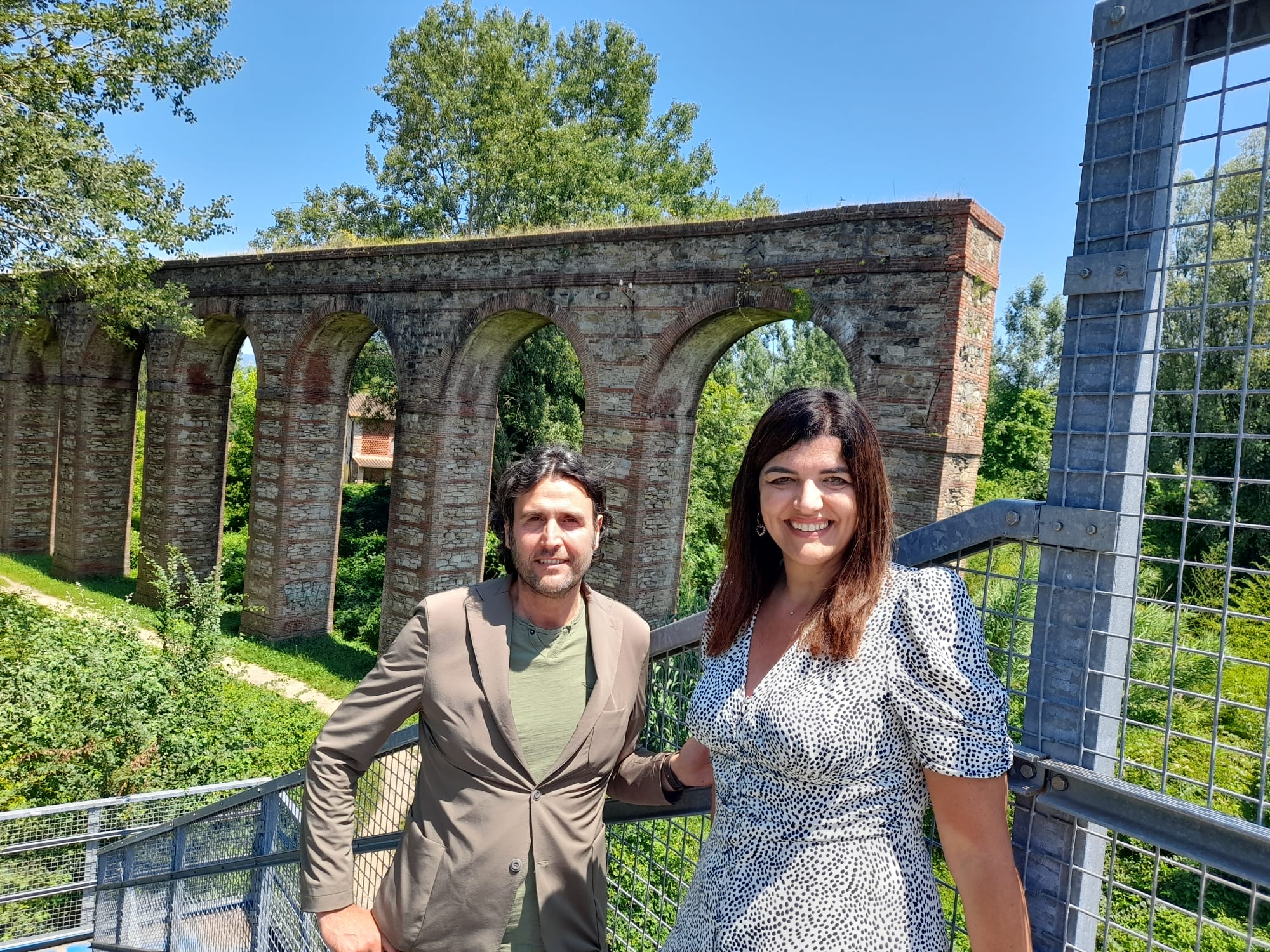 Nelle foto gli assessori Pisano e Buchignani di fronte alle arcate dell'acquedotto del Nottolini che saranno interessate dall'intervento e a quelle dove l'intervento è già stato fatto in passato.