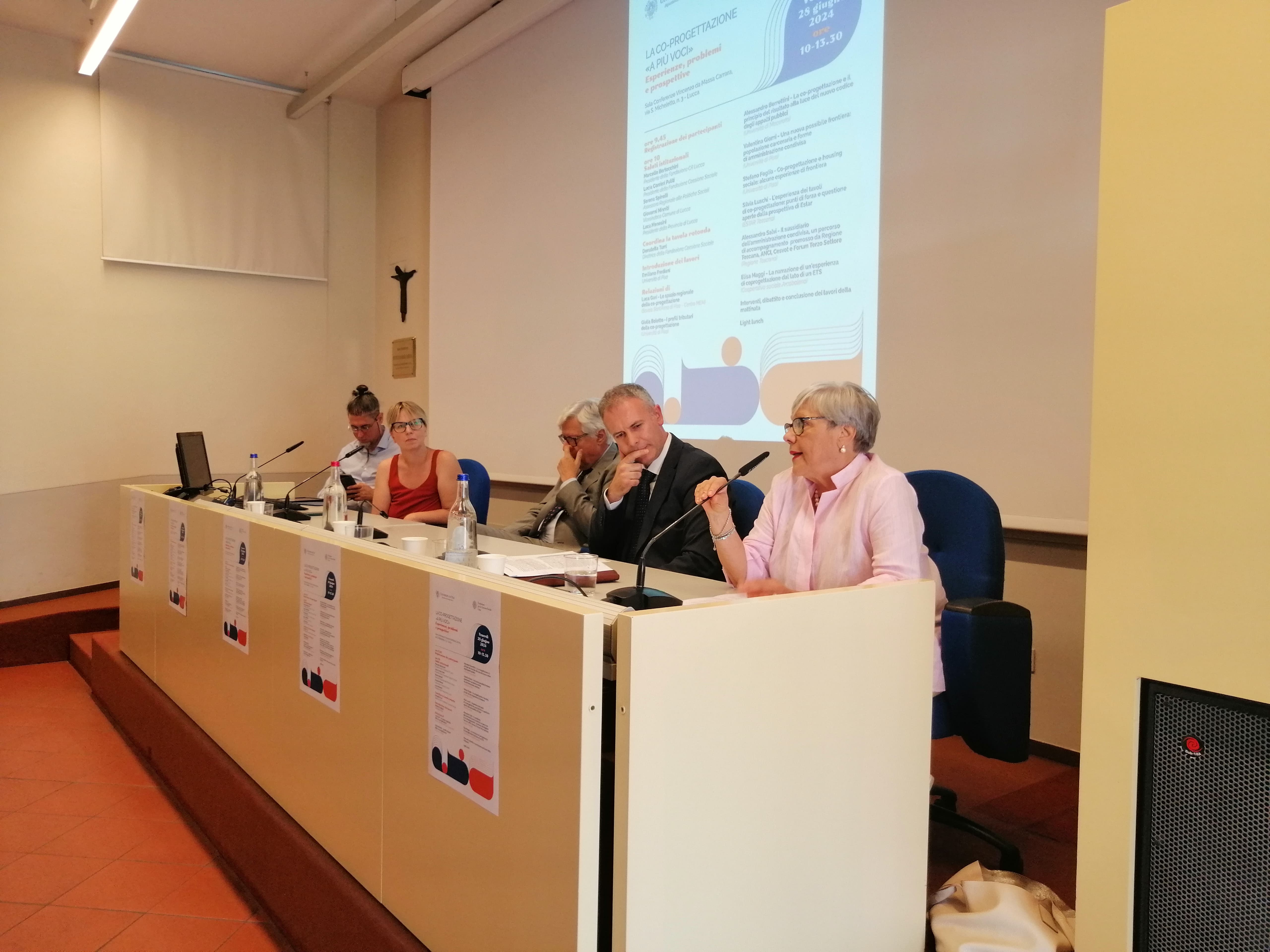 Ad aprire il convegno sono state le introduzioni di Marcello Bertocchini, presidente della Fondazione Cassa di Risparmio di Lucca, Lucia Corrieri Puliti, presidente della Fondazione per la Coesione Sociale, Serena Spinelli, assessora Regionale alle Politiche Sociali e Sara D'Ambrosio per la Provincia di Lucca.