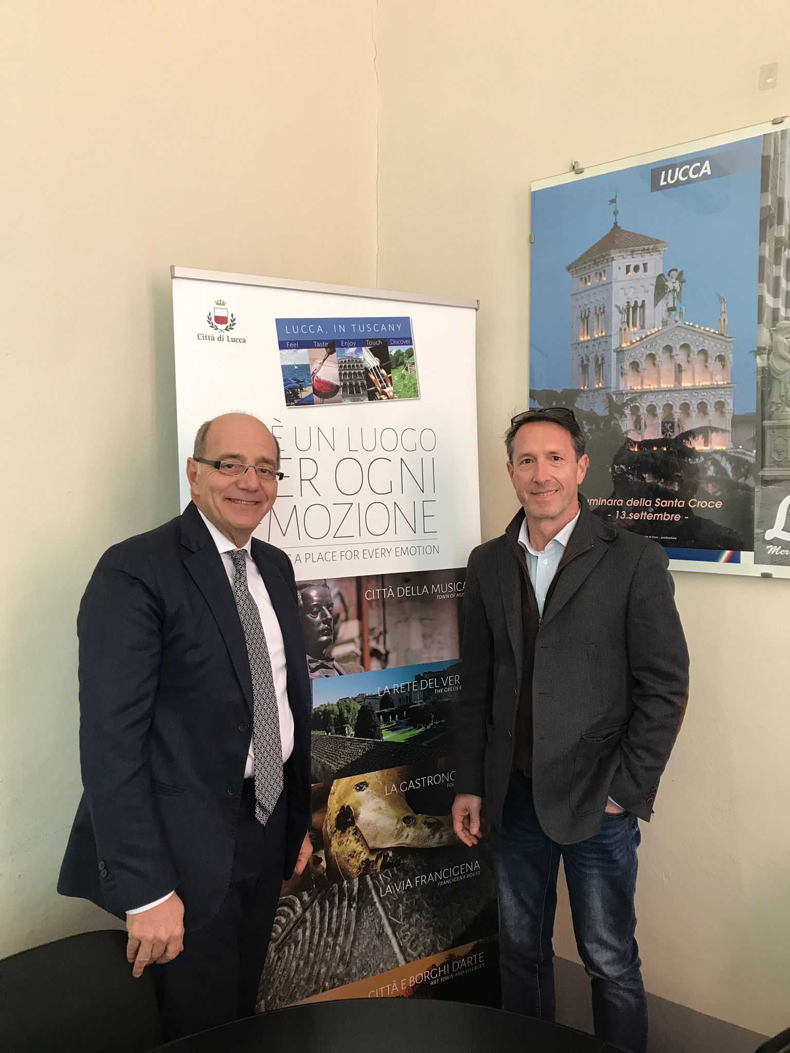 Proficuo incontro tra Francesco Tapinassi, direttore di Toscana Promozione Turistica e l'assessore al turismo del Comune di Lucca, Remo Santini. Il dirigente regionale è venuto a Lucca proprio in occasione dell'inizio del weekend pasquale, che si preannuncia da sold out in città e sul territorio della Piana, per l'arrivo di migliaia di visitatori italiani e stranieri.