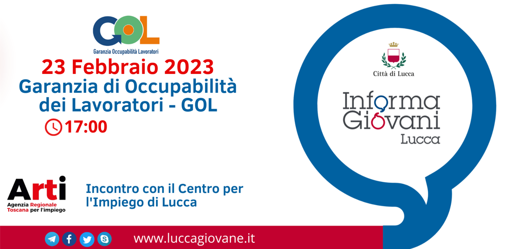 L'Informagiovani, in collaborazione con il Centro per l’Impiego di Lucca, promuove nella sua sede di via delle Trombe un incontro informativo, in programma per giovedì 23 febbraio alle 17. L’incontro servirà a presentare il programma GOL, che intende migliorare l’inserimento lavorativo delle persone.