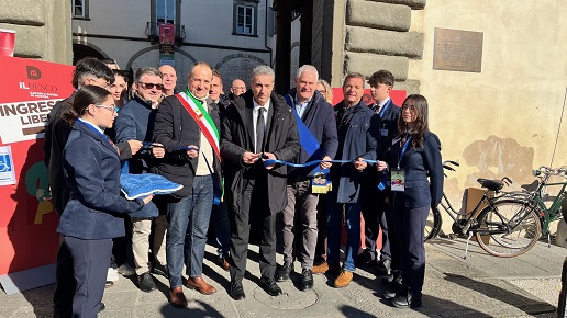 Taglio del nastro al Real Collegio: inaugurato stamani alla presenza delle autorità Il Desco, la mostra mercato del cibo sostenibile, in programma questo fine settimana (ndr sabato 30 novembre e domenica 1 dicembre) e sabato 7 e domenica 8 dicembre nei chiostri del Real Collegio a Lucca, con tante specialità enogastronomiche delle terre della Toscana Nord-Ovest.