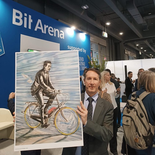 Nell’occasione, l’assessore Santini ha presentato il disegno per la maglia ufficiale della manifestazione, in partnership con Lucca Crea, realizzato dal noto fumettista Frank Federighi, affermato disegnatore che collabora con case editrici, giornali e settimanali prestigiosi come “Max”, “Tv Sorrisi e Canzoni”, “L’Espresso”, “Riflessi”, “Libero”, “Il Fatto Quotidiano” e molti altri. Il disegno raffigura il maestro Giacomo Puccini in bicicletta ed è stato notevolmente apprezzato dagli addetti ai lavori presenti alla Bit.