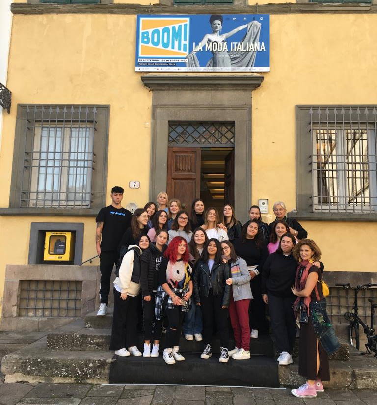 Un centinaio di studenti da Lucca, Massa e Bologna in visita alla mostra "BOOM! La moda italiana" in corso al Palazzo delle Esposizioni di Lucca a ingresso libero. L'esposizione è stata oggetto di interesse di studenti e studentesse provenienti dall'Istituto Alrovandi Rubbiani di Bologna, indirizzo moda, dal corso organizzato da IAL Toscana – sede Massa, agenzia formativa, mentre martedì 11 ottobre 2022 mattina sono arrivate le classi IV e V indirizzo Moda dall'istituto Civitali di Lucca: 18 studentesse e studenti.