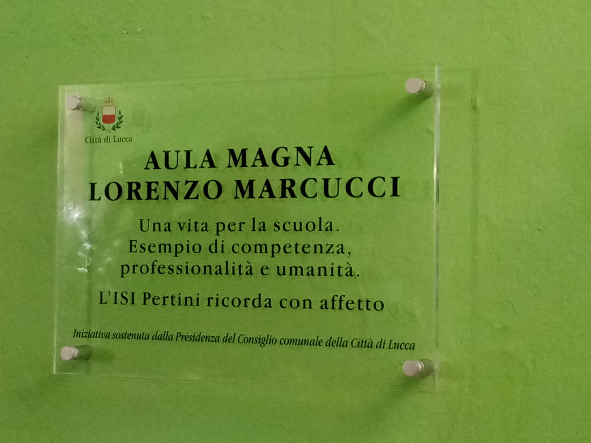 La targa posizionata nell'aula magna ha dunque un significato importante per l'Isi Pertini perchè è stato il luogo in cui si è svolto il collegio docenti ma soprattutto il posto dove Marcucci ha festeggiato l'arrivo della pensione dopo anni di insegnamento.
