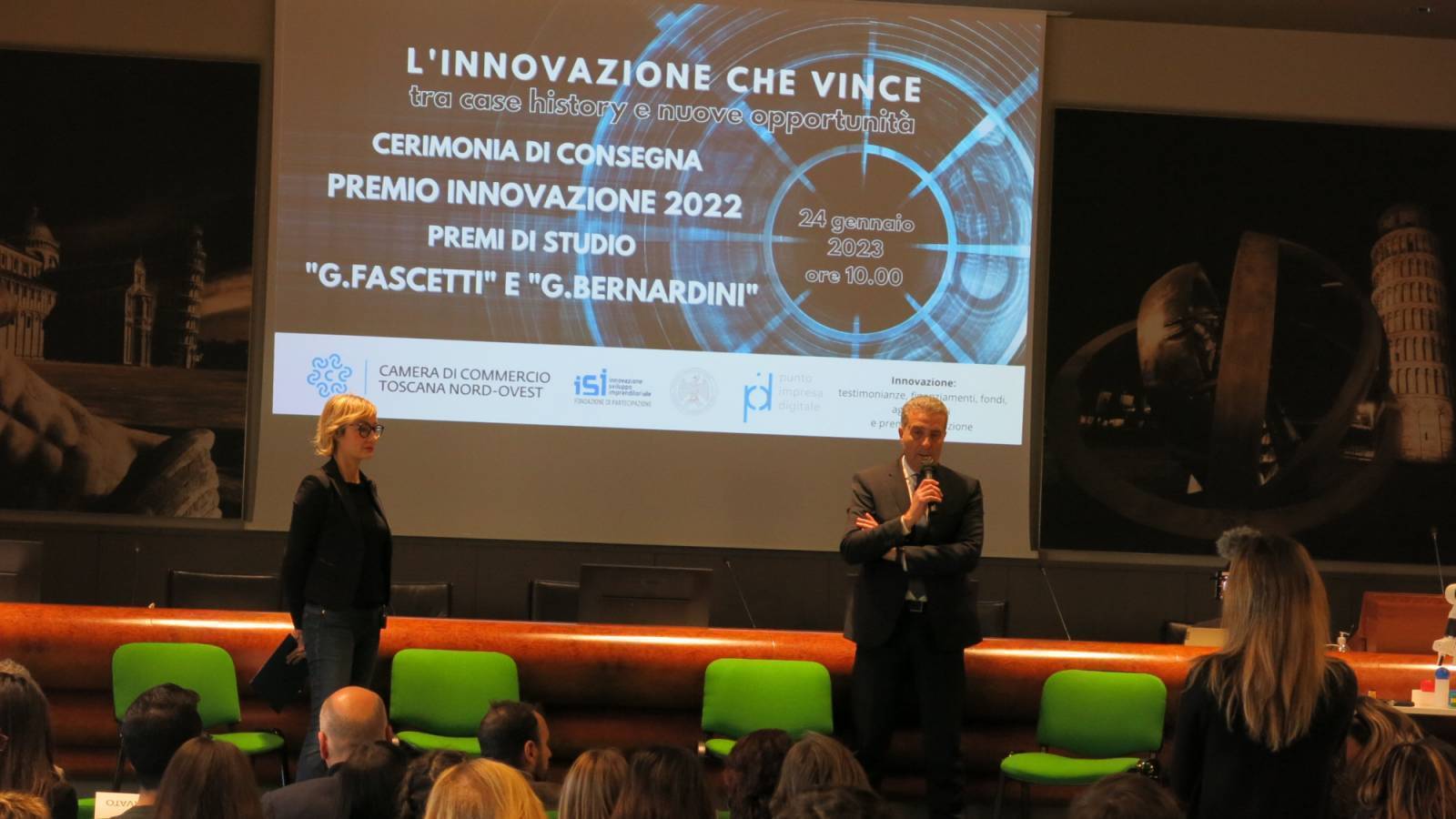 Assegnati i premi a imprese e studenti diplomati durante la cerimonia per il Premio Innovazione e i Premi di Studio "Giuseppe Fascetti" e "Giulio Bernardini" che si è svolta oggi (ndr martedì 24 gennaio) presso la sede pisana della Camera di commercio della Toscana Nord-Ovest, dopo due anni di stop forzato causa Covid, due riconoscimenti che vogliono essere anche uno stimolo e un orientamento a fare impresa nell'high tech per le imprese, ma anche per gli studenti.