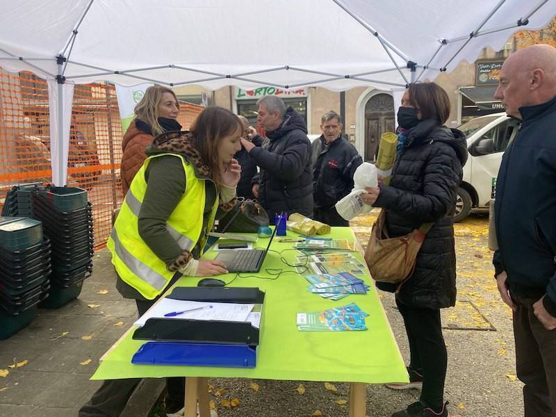 Si profila già come un successo l'iniziativa di Sistema Ambiente, organizzata insieme all'amministrazione comunale, per distribuire nei luoghi più periferici i sacchi gialli del multimateriale e i nuovi bidoncini per la raccolta del vetro. Stamani, martedì 6, infatti, l'iniziativa è partita da Ponte a Moriano in occasione del mercato settimanale. Qui tante persone si sono presentate in piazza per ritirare i materiali necessari per una corretta raccolta differenziata e per chiedere informazioni agli operatori presenti e all'assessore all'ambiente, Cristina Consani. A Ponte a Moriano, il martedì mattina, l'iniziativa proseguirà fino al 20 dicembre compreso, per poi spostarsi in altre zone del territorio, sempre in occasione dei mercati riona.li.