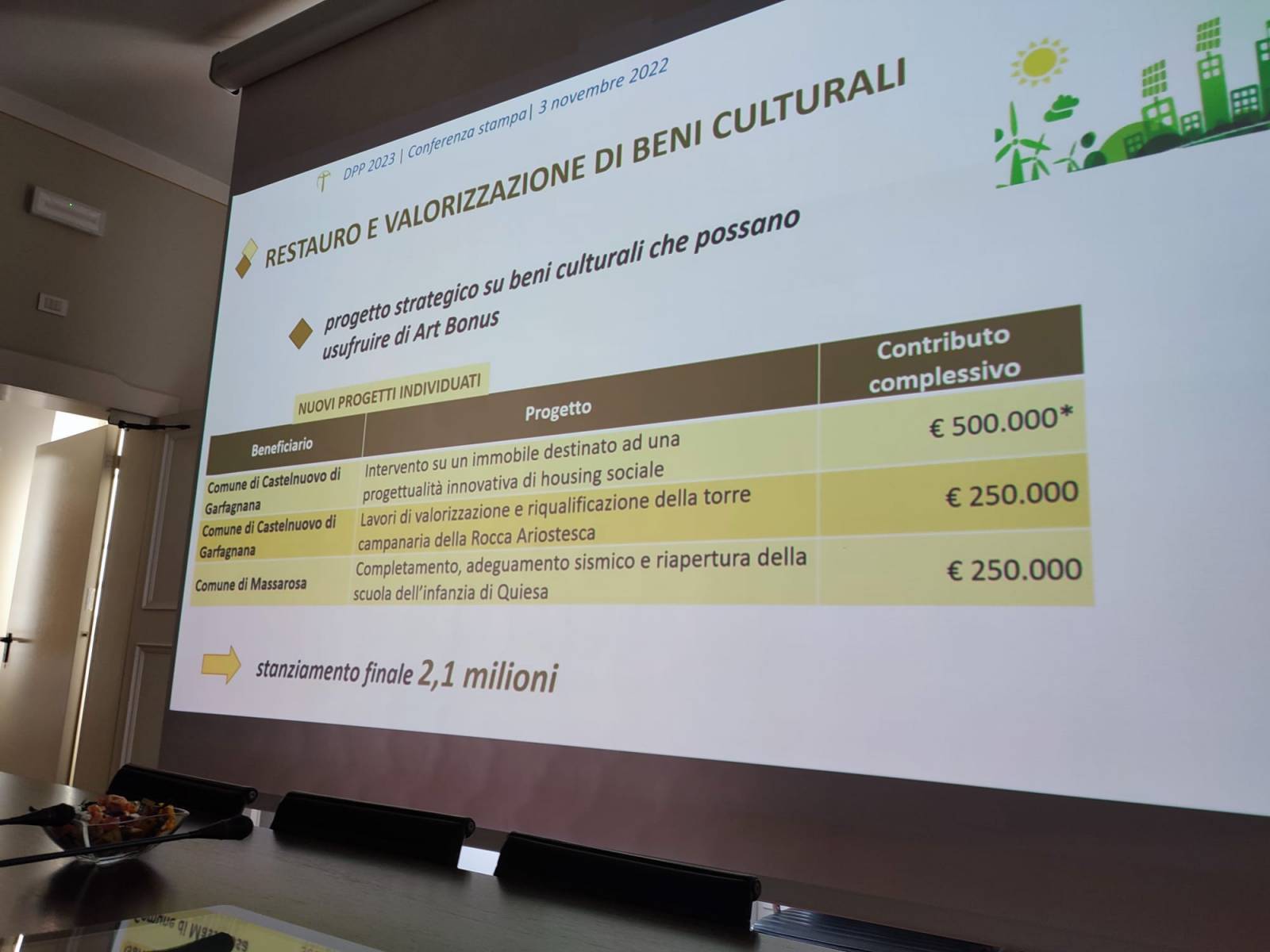 Anche per quanto riguarda i beni culturali e le opere pubbliche ci sono dei progetti: sono stati inseriti, nel progetto di riqualificazione proposto nel 2021, altri tre immobili.