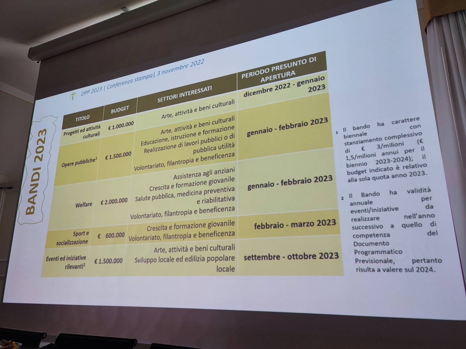 Le risorse per i bandi previsti per il 2023 ammonteranno invece a 3 milioni.