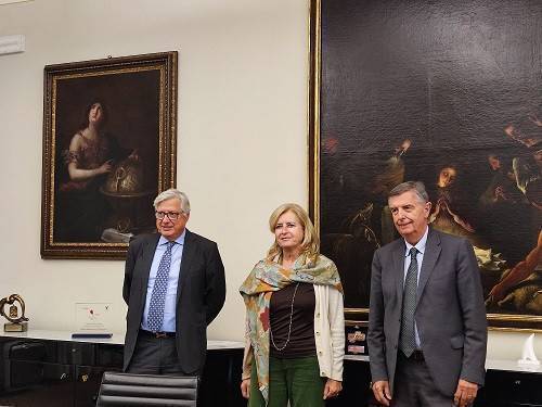 Presenti alla conferenza stampa il Presidente della Fondazione Cassa di risparmio di Lucca Marcello Bertocchini, il vicepresidente Raffaele Domenici e la direttrice Maria Teresa Perelli.