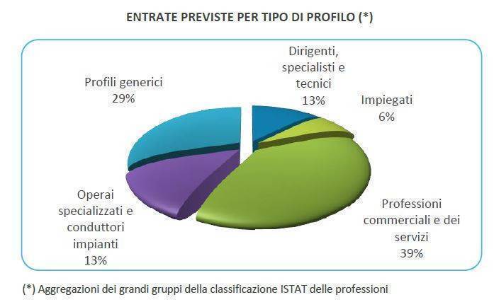 Le maggiori difficoltà di reperimento riguardano le professioni con elevata specializzazione (il 51,5% delle figure è difficile da reperire), per le quali viene richiesta anche una precedente esperienza nella professione nel 46,8% dei casi: in particolare, tecnici in campo informatico, ingegneristico e della produzione (di difficile reperimento nel 64,8% dei casi) e tecnici della sanità, dei servizi sociali e dell'istruzione (54,7%). Difficili da reperire anche gli operai specializzati e conduttori di impianti e macchine (46,5%), specialmente quelli metalmeccanici (66%), mentre le imprese dichiarano minori problematiche per impiegati e addetti commerciali e dei servizi (27,3%) e per i profili non qualificati (22,8%).