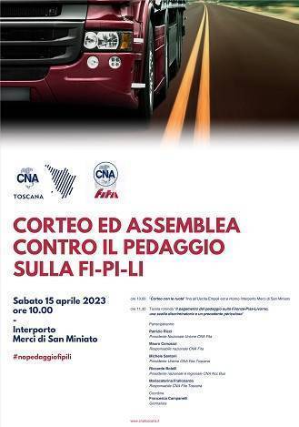 Un corteo di Tir e Bus sulla Fi-Pi-Li partirà dall’Interporto Merci di San Miniato (uscita Santa Croce sull’Arno) arrivando fino ad Empoli est e ritorno, per protestare contro una scelta ‘discriminante’. Si svolgerà sabato 15 aprile con partenza alle ore 10,00 all’Interporto Merci di San Miniato (uscita Santa Croce sull’Arno via Marco Polo) il raduno degli operatori del settore trasporti contro l’ipotesi del pagamento di un pedaggio selettivo sulla superstrada Firenze Pisa Livorno, organizzato da Cna Fita Toscana.