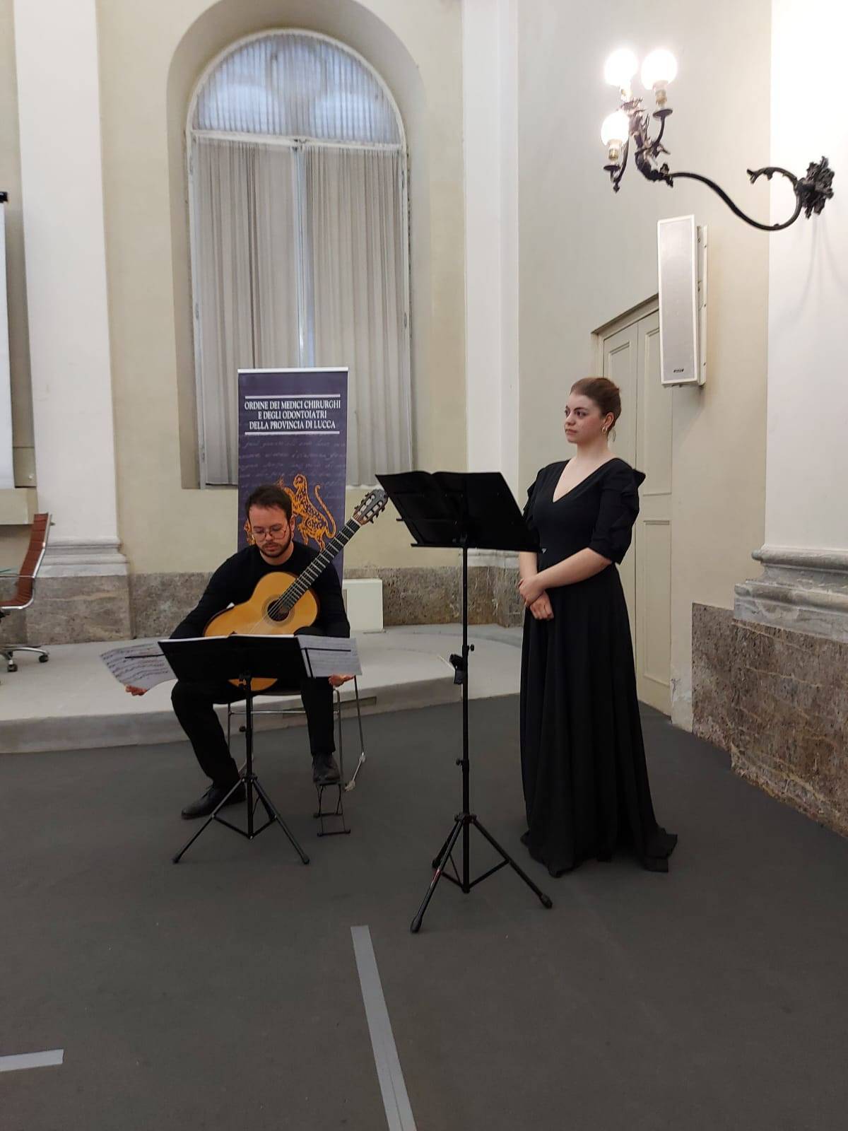 Poi la suggestiva esibizione del Duo Chitarra e Voce Alessandro Dominguez e Aurora Martini dell’Associazione Musicale Lucchese, presentati dalla’avvocato Ilaria Ottolini, responsabile per l’Associazione dei rapporti con gli Ordini