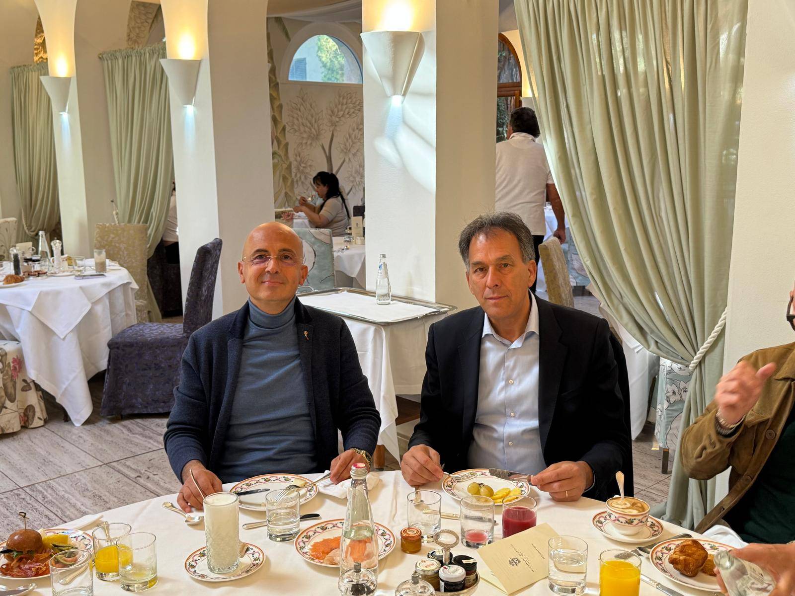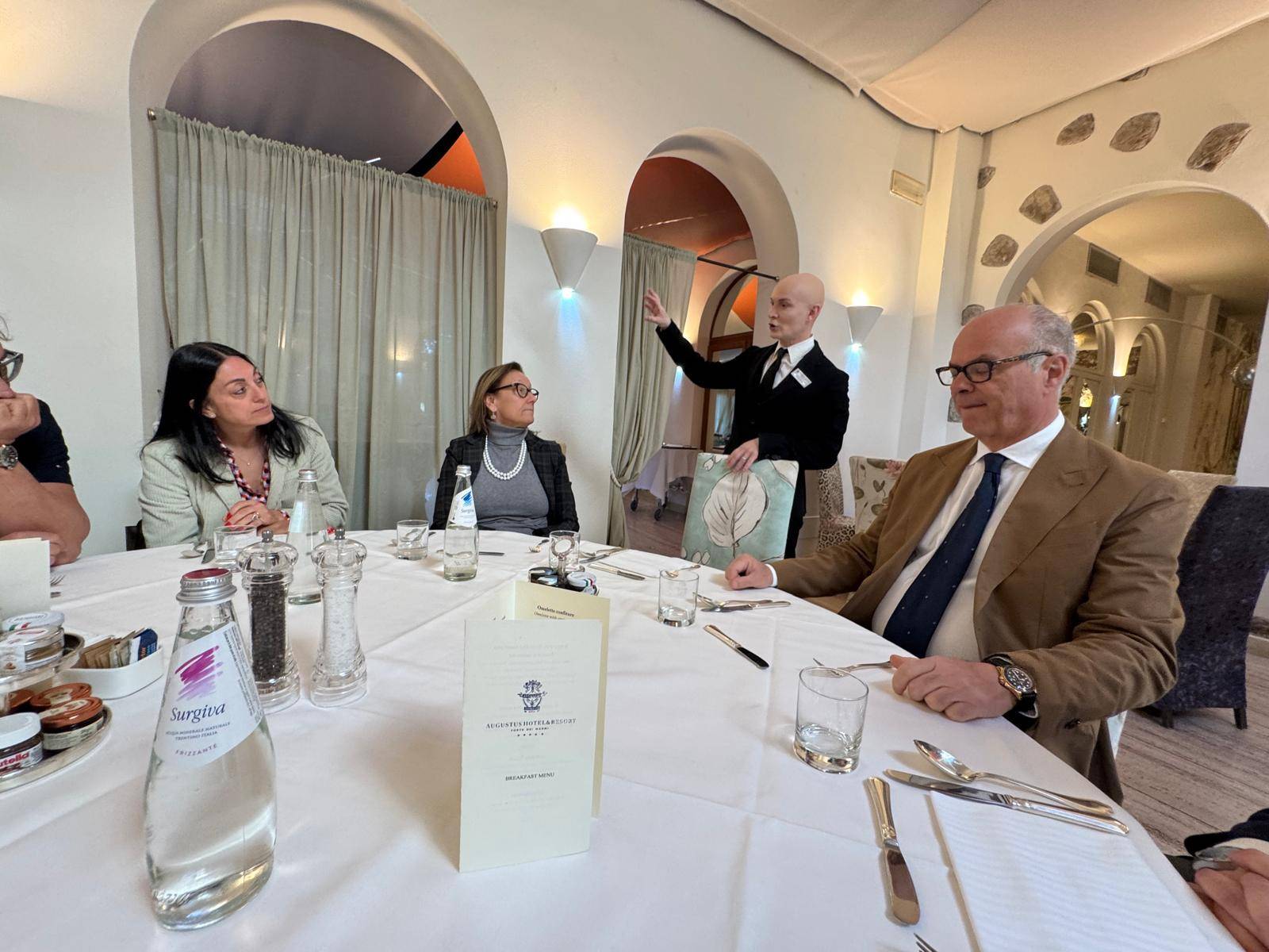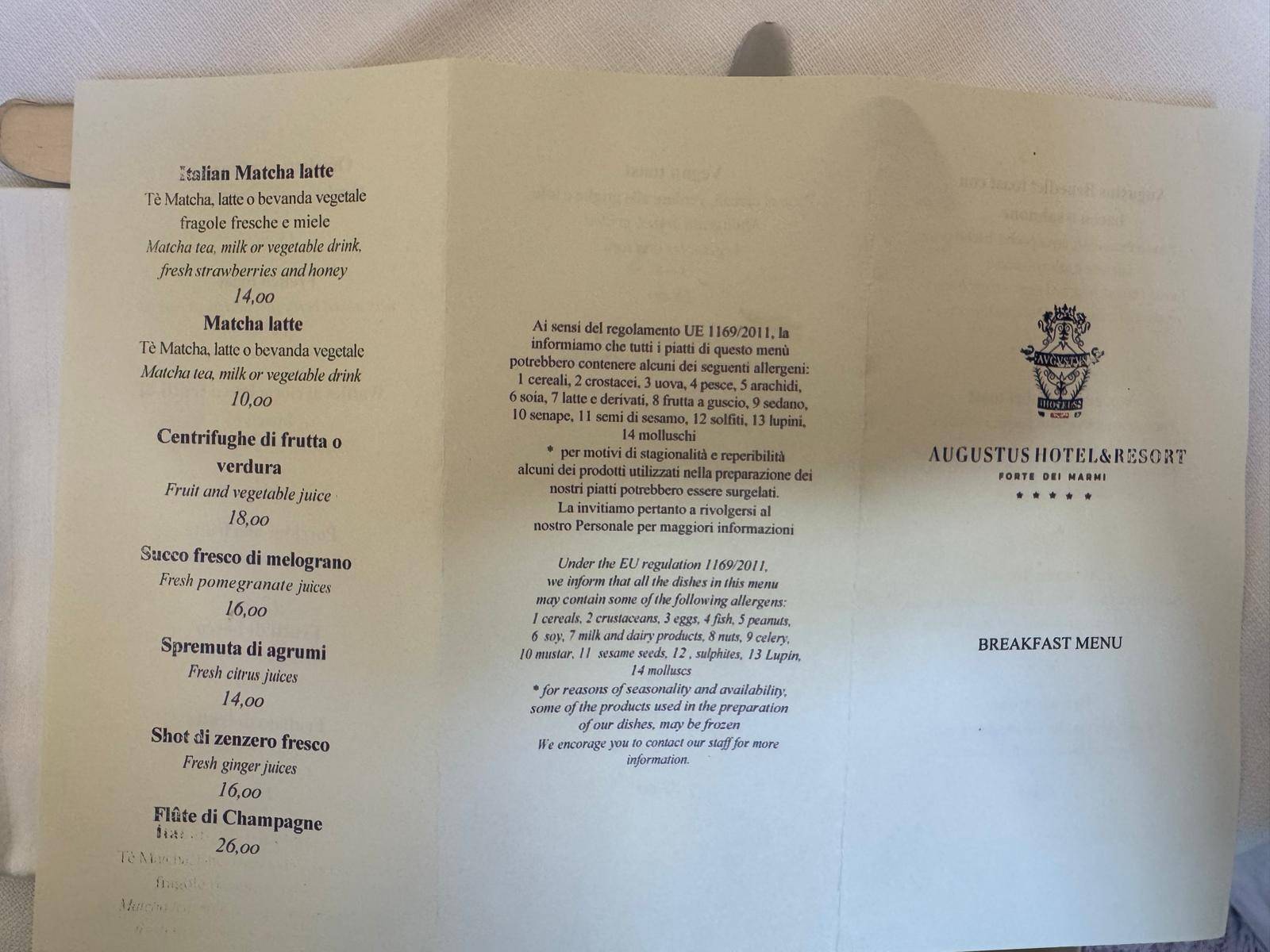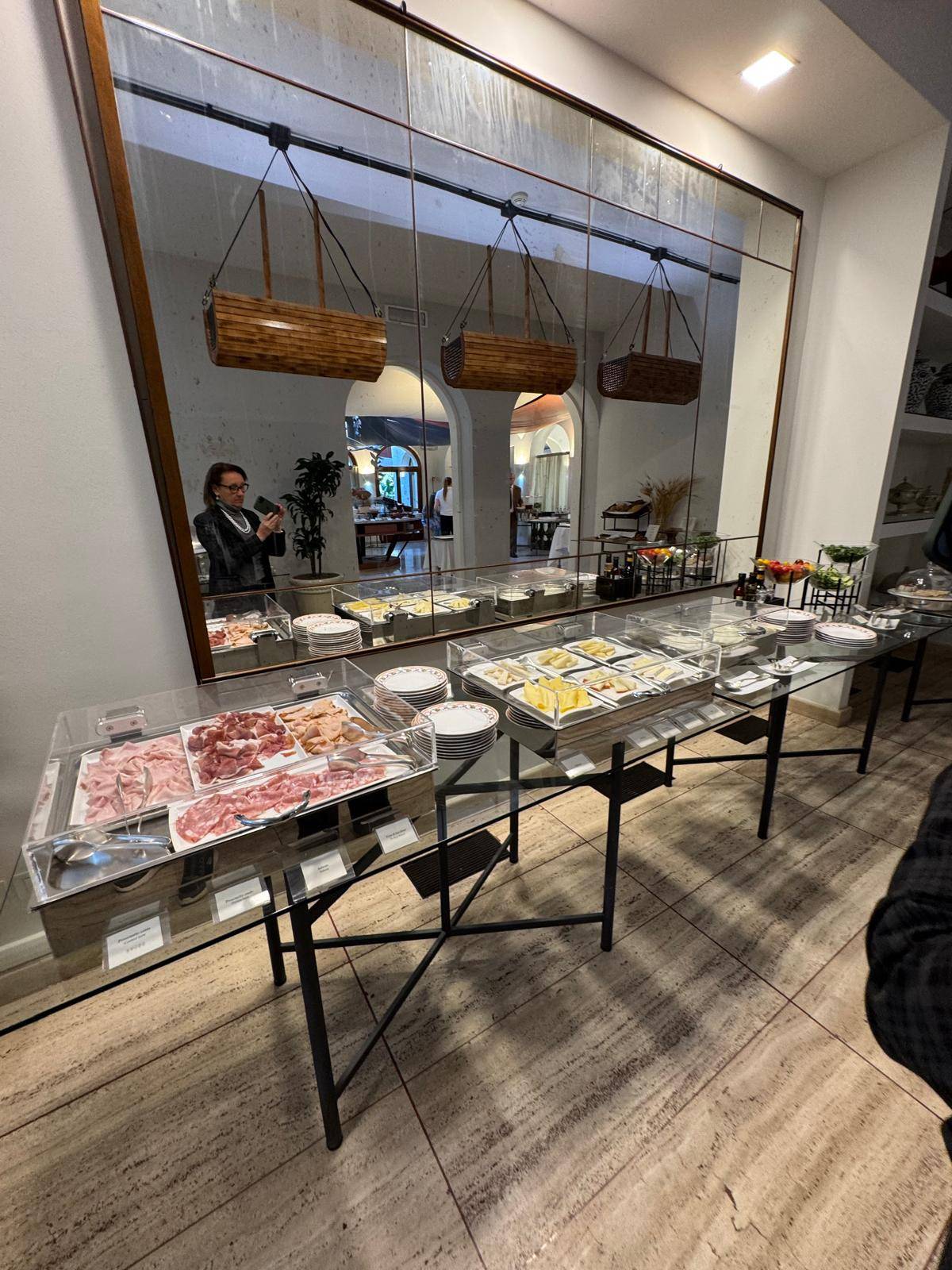 Appuntamento alle 9.15 all'ingresso dell'Augustus Hotel & Resort di Forte dei Marmi, una struttura cinque stelle extra lusso di proprietà della famiglia Maschietto. Ad aprile non c'è molta gente ospite delle lussuose camere che si trovano nel corpo centrale che fui la villa del senatore Giovanni Agnelli. Così come nelle ville-dependance situate nel bellissimo parco pieno di vegetazione. Il direttore Umberto Grotti è stato, come sempre, puntuale e accogliente. Al piano terra dove si consumano le colazioni, un grande tavolo circolare è stato imbandito e pronto per dare il via alle danze. L'albergo è, indubbiamente una chicca per un target di un certo livello, ma la possibilità di degustare le colazioni è per chiunque voglia, almeno una volta, godersi un pantagruelico inizio di giornata. Per non parlare dell'efficienza e della professionalità dello staff, sempre puntuale a soddisfare le esigenze dei commensali.