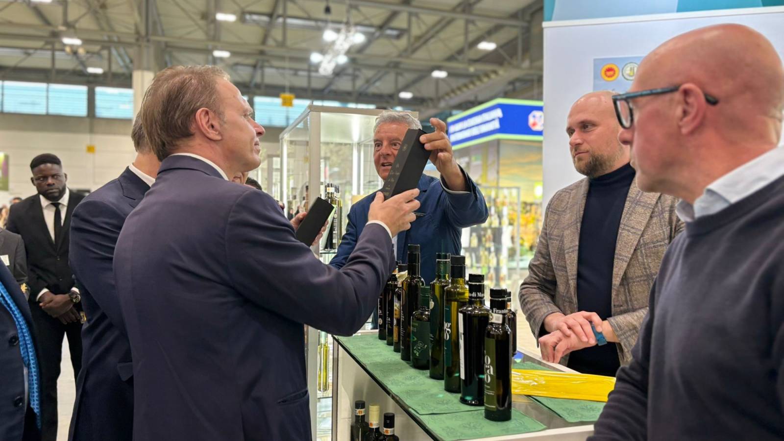 Durante la visita, il Ministro ha avuto modo di apprezzare le produzioni locali, degustando gli oli extravergine d'oliva e scoprendo proposte innovative come il gin alle foglie di olivo. Un momento di particolare rilievo è stato l'incontro presso lo spazio della Strada del Vino e dell'Olio di Lucca, Montecarlo e Versilia, dove il Ministro è stato omaggiato di una bottiglia di olio dal Consorzio di Tutela Olio DOP Lucca. Il gesto ha inteso suggellare il valore della certificazione e della qualità che caratterizzano il comparto delle tre province, settori che la Camera di Commercio continua a sostenere attraverso la partecipazione ai grandi eventi internazionali.
