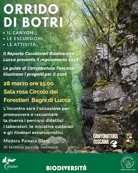 L’Orrido di Botri: il canyon, le escursioni, le attività”: questo il titolo scelto per l’incontro, durante il quale verranno illustrati il regolamento di accesso alla Riserva, le escursioni nel canyon e nei sentieri circostanti, i percorsi didattici, i laboratori e le iniziative culturali previste per il nuovo anno.