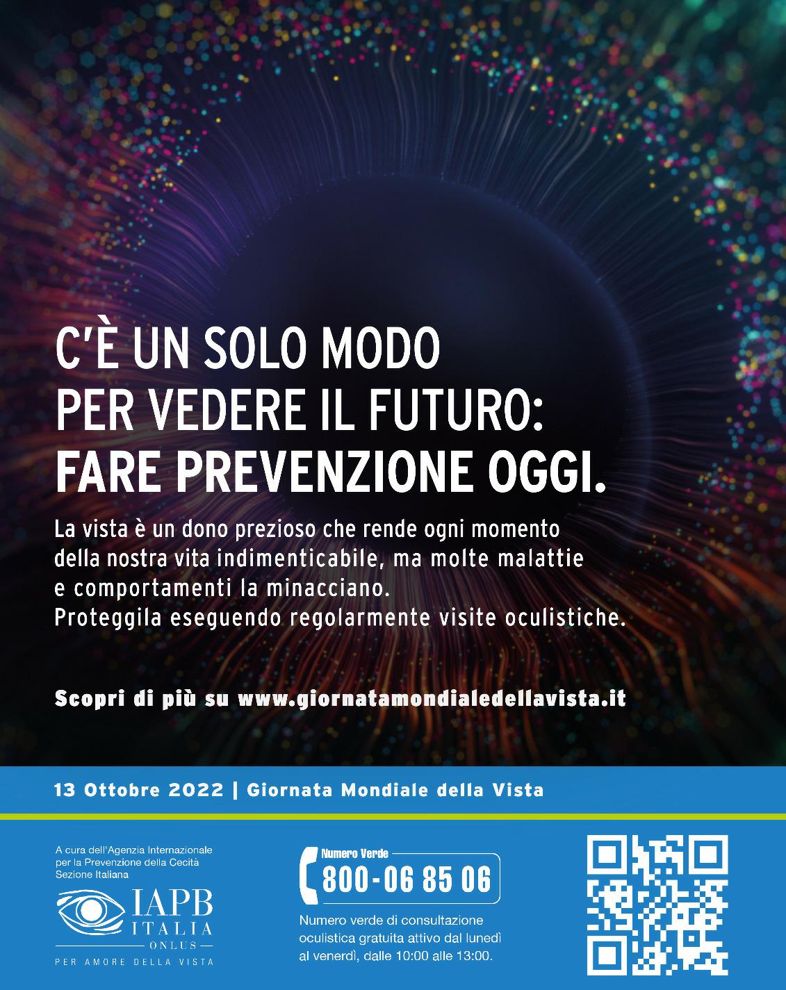 La prevenzione espande i suoi orizzonti; sono tante, infatti, le iniziative gratuite che si svolgeranno in occasione della Giornata Mondiale della Vista che si celebra il secondo giovedì di ottobre, allo scopo di richiamare l'attenzione di tutti: istituzioni, cittadinanza, autorità politiche e amministrative sull'importanza del bene prezioso della vista e sulla necessità di tutelarla e prendersene cura in ogni fase della vita.