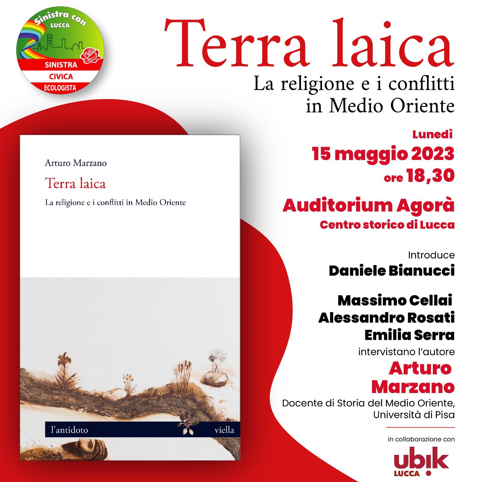 Confrontarsi sulla costruzione della pace, proprio quando la guerra infuria intorno a noi. È lo scopo della lista “Sinistra con Lucca-Sinistra civica ecologista”, che - in collaborazione con Ubik Lucca - presenta il libro “Terra laica. La religione e i conflitti in Medio Oriente” scritto da Arturo Marzano, docente di Storia del Medio Oriente all'Università di Pisa, ed edito da Viella Libreria Editrice nella collana “L’antitodo”