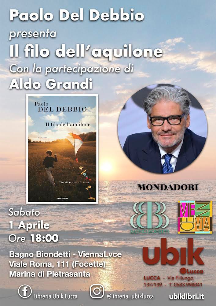 Paolo Del Debbio, il popolare giornalista e conduttore televisivo, sarà in Versilia il 1 aprile alle ore 18 presso il Bagno Biondetti-ViennaLvce di Marina di Pietrasanta a Focette di proprietà della famiglia Menici. Una scelta fortemente voluta da Giacomo e Isacco Menici e da Naghi Kamal i quali hanno fatto tutto il possibile per organizzare l'evento. Paolo Del Debbio presenterà il suo ultimo libro edito da Mondadori Il filo dell'aquilone. Lo introdurrà e anche intervisterà il direttore responsabile delle Gazzette, Aldo Grandi.
