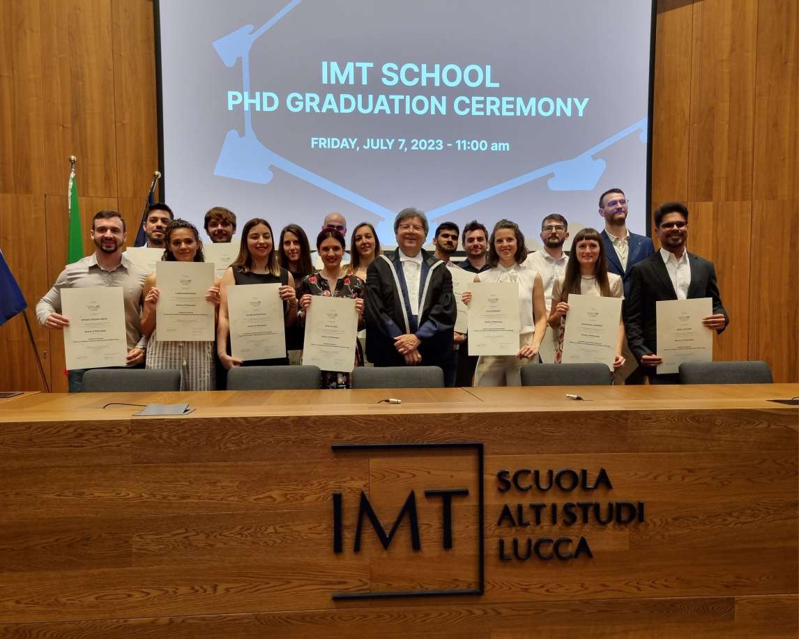 Sono sedici gli allievi della Scuola IMT che questa mattina (7 giugno) hanno ricevuto il diploma di dottorato nel corso della tradizionale cerimonia. L'evento, uno dei momenti più attesi e significativi per l'intera comunità della Scuola, si è tenuto nella Cappella Guinigi del Complesso di San Francesco.