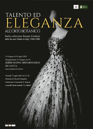 Oggi 23 giugno ore 18 nella Serra dell’Orto Botanico di Lucca in occasione di Fashion Weekend inaugura la mostra TALENTO ED ELEGANZA curata dalla collezionista e antiquaria lucchese Renata Frediani, esperta del periodo napoleonico, proprietaria, anche dell’intera collezione dei raffinati abiti in esposizione.