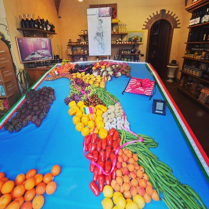Allestita per l'occasione della tappa di oggi del Giro d'Italia, la vetrina dello storico negozio "Ortofrutta Lucca Centro" di Piazza San Salvatore. Un'italia realizzata con frutta e ortaggi con tanto di rappresentazione del percorso, è quanto creato dallo staff del negozio nella vetrina principale, per omaggiare la 107esima edizione del giro d' Italia che quest'anno vede la nostra città come arrivo della 5° tappa. Una singolare opera che va quindi ad aggiungersi alle altre realizzazioni in tema Giro d'Italia sistemate da Comune di Lucca ed esercenti lungo le vie principali della città.