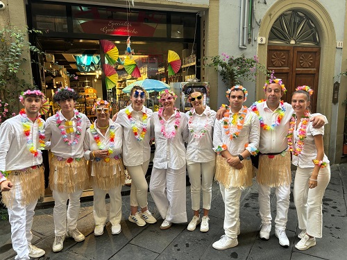 Una Notte Bianca da ricordare: è questa l'intenzione di Luana Travaglia e di Jessica Pescaglini che stasera hanno predisposto all'Oste di Lucca 2, il ristorante di via Cenami, una festa hawaiana all'insegna del saluto Aloha che vuol dire amore, pace, comprensione. Una iniziativa che vuole diffondere ospitalità e accoglienza enogastronomiche per il locale che fa il paio con L'Oste di Lucca di via Fillungo dove si trovano Chiara e Matteo Del Magro oltre al direttore di sala Vincenzo Botta. In vie Cenami trionfano, così, gli abiti che ricordano i paradisi delle isole americane teatro di tante pellicole d'epoca. Questa sera menu top per chiunque si sieda al tavolo.