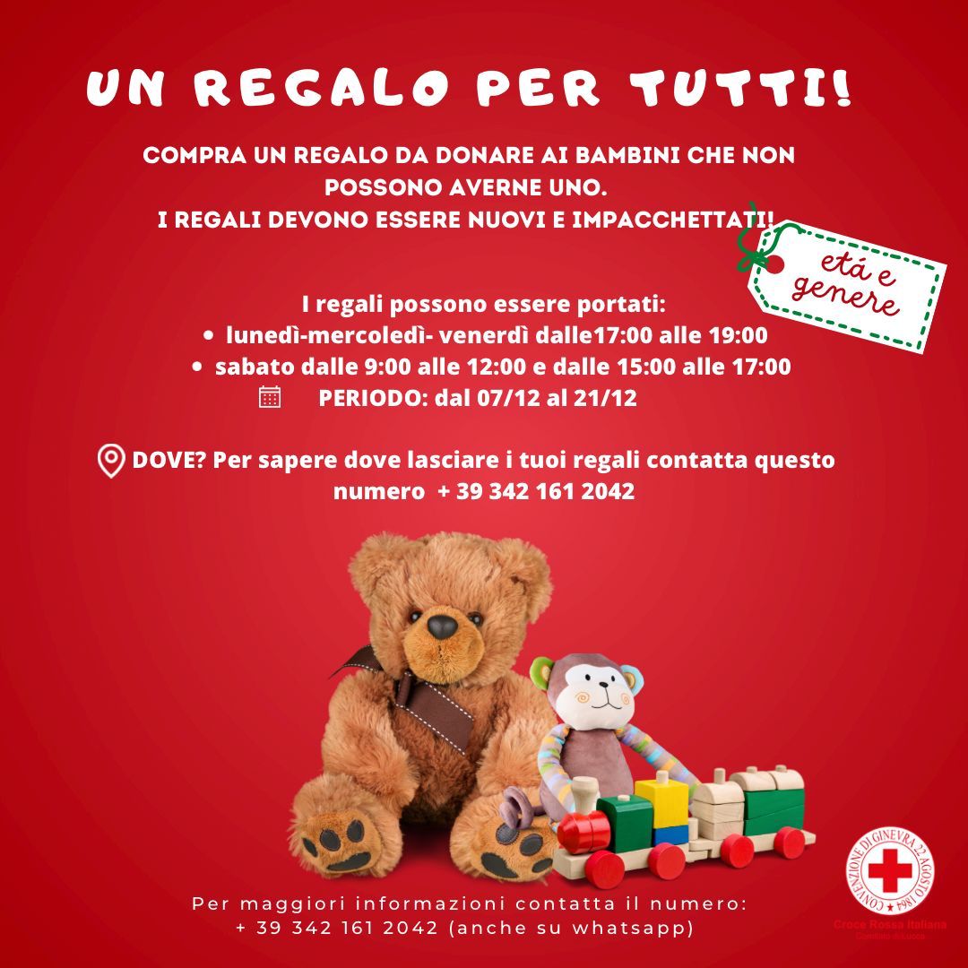 Come ormai da tradizione, la Croce Rossa di Lucca ha organizzato anche l'iniziativa Un regalo per tutti dedicata ai bambini più bisognosi che questo Natale, purtroppo, non potranno averne uno.