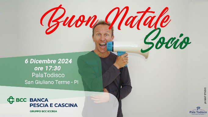 "Abbiamo voglia di stare insieme...! Abbiamo voglia di salutarci con una stretta di mano e condividere eventi pieni di emozioni. Tra poche settimane sarà Natale". Comincia così l'invito che Banca di Pescia e Cascina ha rivolto ai suoi Soci a pochi giorni dal Natale per partecipare all'evento Buon Natale Socio 2024, venerdì 6 dicembre alle 17,30.