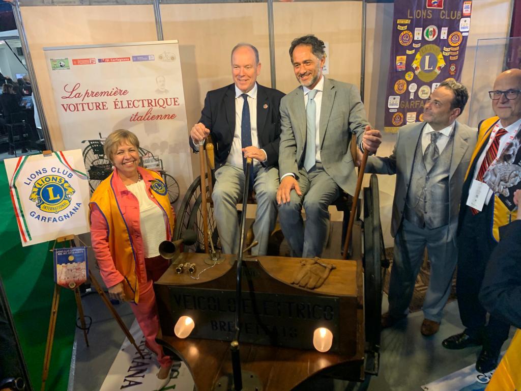 Sogno che poteva rimanere tale o avverarsi, chissà. E così è stato. A fine della prima giornata espositiva, scortato da guardie del corpo e da una folta delegazione, alla presenza di tanti ospiti che circondavano con interesse lo stand lucchese, è arrivato proprio lui, sua altezza. Accolto dai due presidenti Lions e da rappresentanti delle associazioni, è salito sulla storica vettura non risparmiandosi a foto, facendo domande incuriosito e commentando positivamente la nobile iniziativa, tanto per rimanere in tema. Quello, appunto,a di portare a un appuntamento come quello di “Ever Monaco 2023” proprio quelle due invenzioni che avrebbero rivoluzionato il mondo.
