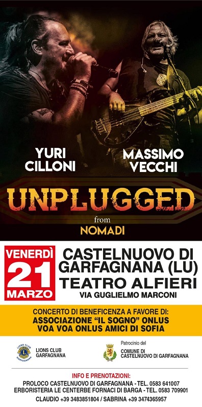 Lions Club Garfagnana sempre in prima linea nel sostenere importanti iniziative di solidarietà come quella che si terrà venerdì 21 marzo presso il Teatro Alfieri di Castelnuovo di Garfagnana. Un concerto intrigante con Yuri Cilloni cantante e Massimo Vecchi, bassista e seconda voce, unplugged direttamente dai Nomadi. Una serata, quella di venerdì, a dir poco speciale all’insegna dello spettacolo offerto e della buona musica ma soprattutto, della solidarietà. Infatti il ricavato sarà completamente devoluto alle associazioni “Il Sogno” onlus e “Voa Va” onlus amici di Sofia. I Lions Club Garfagnana a mezzo del suo presidente Claudio Civinini invitano tutti a questo evento augurandosi una partecipazione numerosa all’insegna della condivisione di iniziative importanti per sostenere cause altrettanto importanti portate avanti da queste due associazioni del territorio. L’iniziativa ha il prezioso patrocinio del Comune di Castelnuovo di Garfanana. Non dimenticando mai il motto che caratterizza tutto l’operato mondiale del Club Lions: “we serve”.