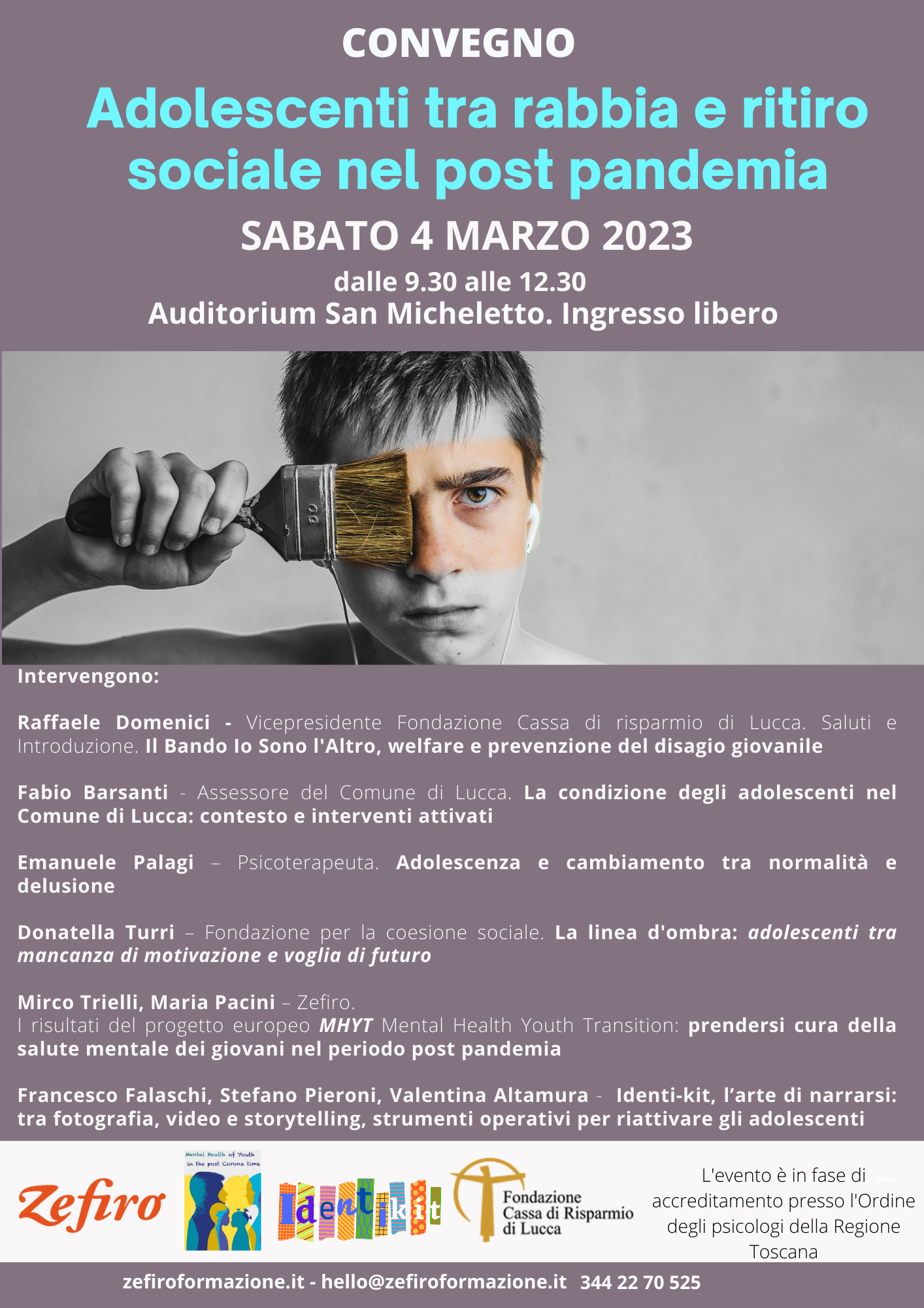 Parte da un interrogativo e da una riflessione sul benessere mentale dei nostri adolescenti il convegno che si terrà presso l'auditorium san micheletto sabato 4 marzo, a partire dalle 9.30, dal titolo “Adolescenti tra rabbia e ritiro sociale nel post pandemia”.