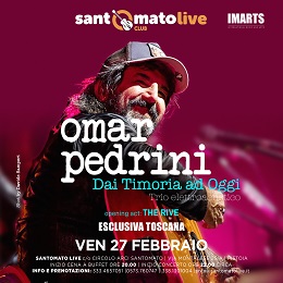 Appuntamento con la grande musica grazie alla proficua sinergia tra “LookMyArt.event” e il noto locale Santomato Live di Pistoia, in via Montalese, 25): venerdì 27 febbraio una nuova esclusiva per la Toscana con il concerto di Omar Pedrini con uno spettacolo elettro-acustico in trio del musicista ex Timoria. La serata sarà aperta dal gruppo The Rive.