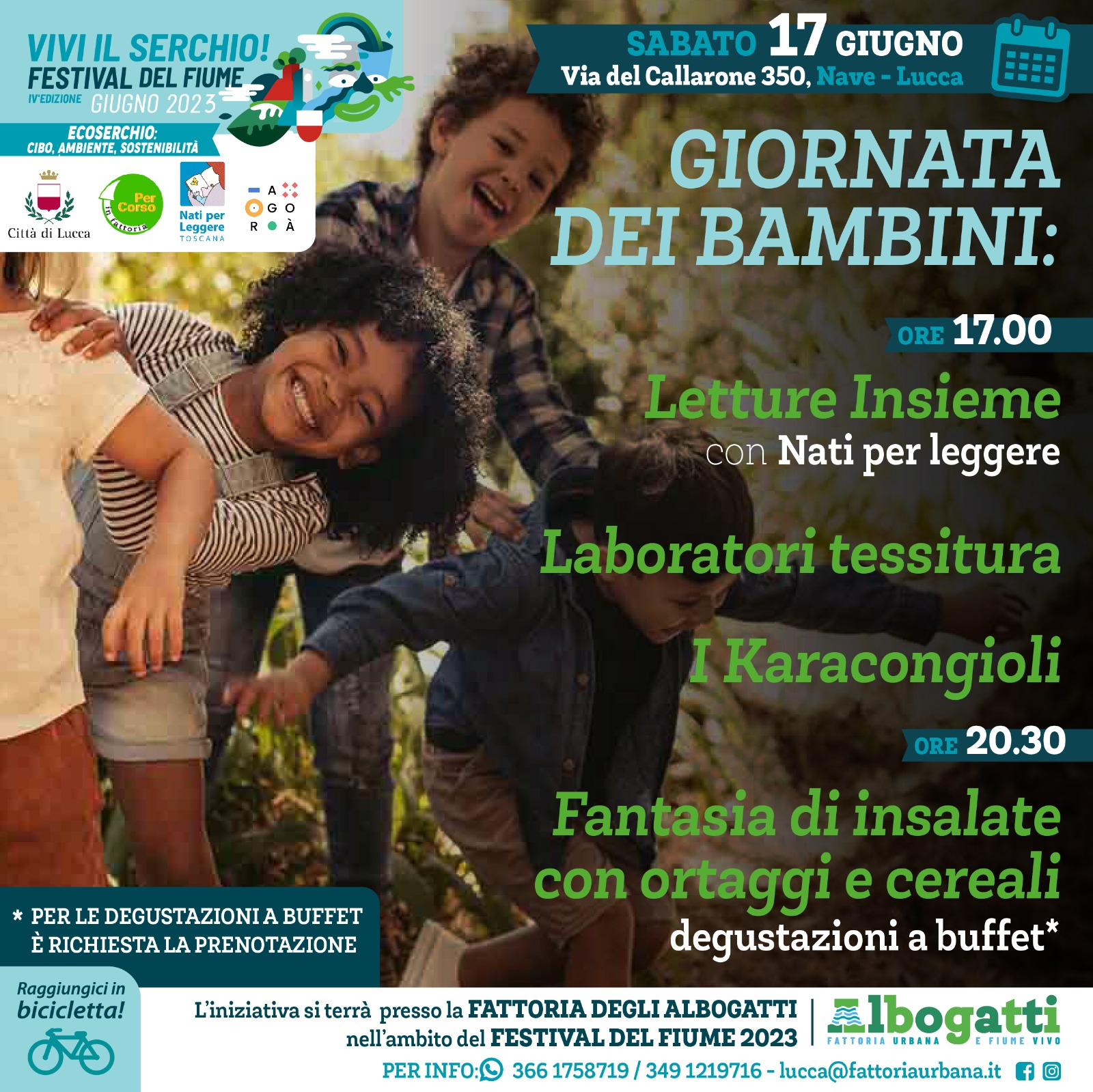 Sabato 17 giugno ore 17 "Giornata dei bambini" con attività dedicate a loro e alle loro famiglie: "Letture insieme" con Nati per leggere, Laboratori di tessitura con Elena Febbrai e i Karacongioli con il loro divertente spettacolo.