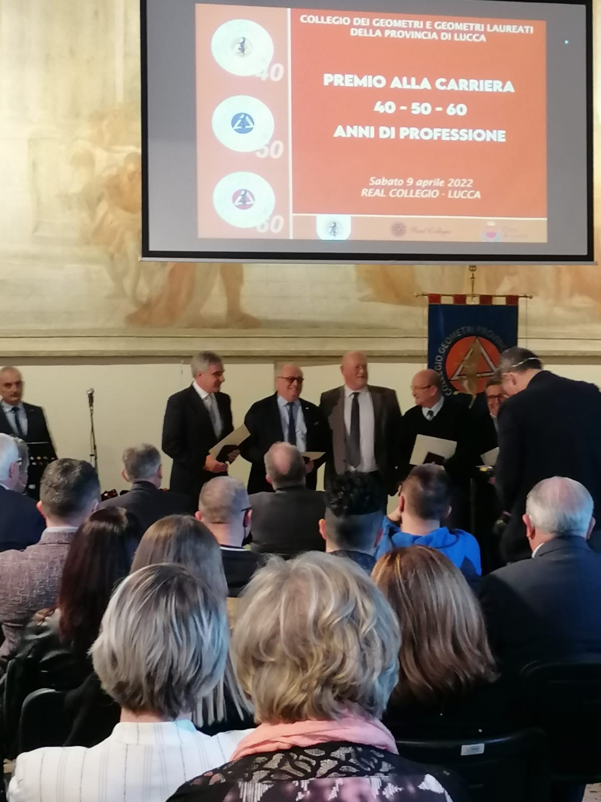 Un successo tanto atteso quanto sperato, quello della premiazione dei 40, 50 e 60 anni di iscrizione all’albo dei geometri appartenenti al collegio della provincia di Lucca. Manifestazione, quella della consegna degli attestati e della medaglia tenutasi nei locali del Real Collegio di Lucca, in un magnifico contesto con una organizzazione che ha superato ogni aspettativa. Un momento che va al di là della celebrazione di una ricorrenza, ma che si configura come un’occasione per riflettere sull’orgoglio di appartenere a una categoria che riveste un importante ruolo nell’ambito della cultura e della società di tutti i tempi.