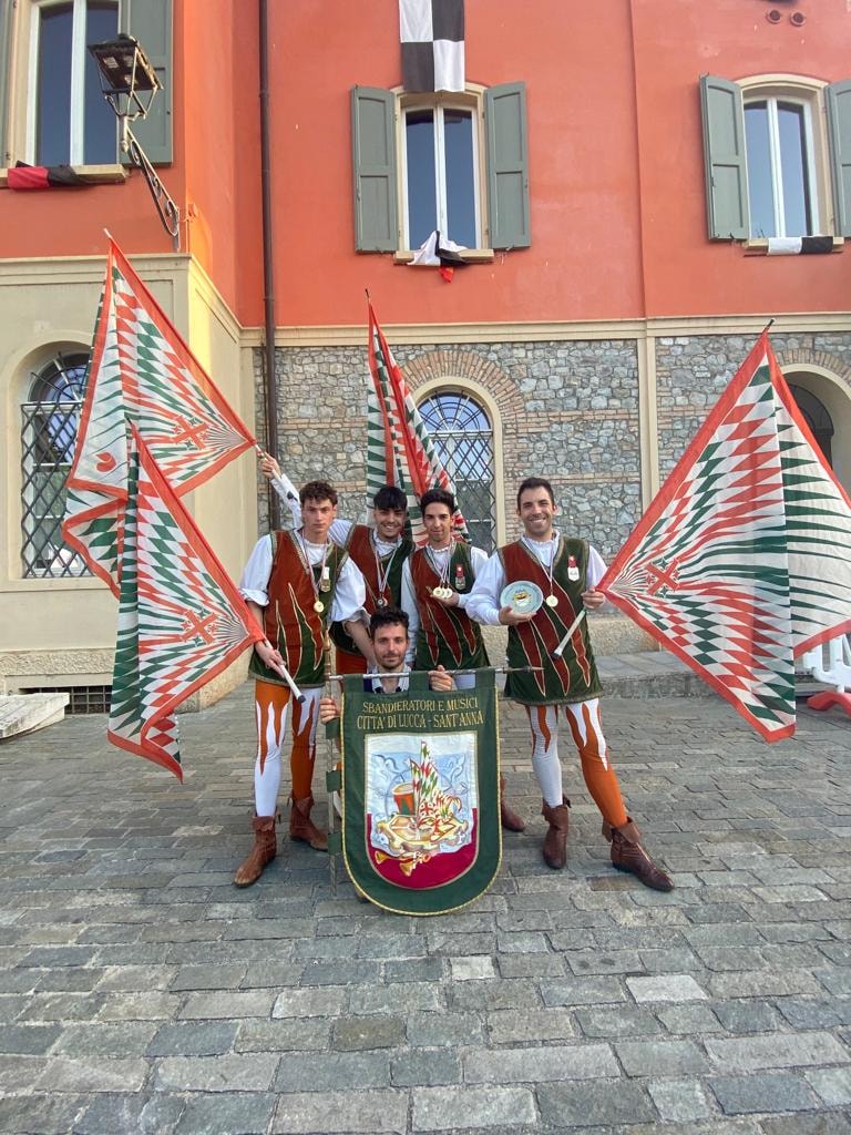 I giovani alfieri lucchesi hanno sfidato nelle di singolo, coppia e piccola squadra gli Sbandieratori di Gallicano, Calenzano, Foligno e della Contrada Monticellli di Quattrocastella riuscendo ad conquistare il primo posto nella gara di singolo con Brogi Matteo (campione italiano in carica), nella piccola squadra con Brogi, Emanuele Lucchesi, Federico Degl’Innocenti e Antonio Milone mentre nella gara di coppia oro per Brogi e Lucchesi ed ottimo terzo posto con Gianluca Mazzoni e Milone.