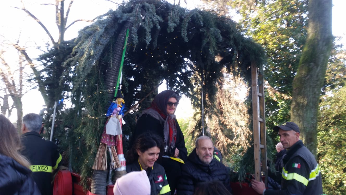 Finalmente di nuovo grande folla per la tradizionale Befana di S. Francesco che puntuale alle 14.30 è salita sulle Mura sopra una camionetta dei pompieri e sta sfilando verso il Caffè delle Mura distribuendo calze piene di dolciumi ai bambini che la seguono numerosi e festanti.