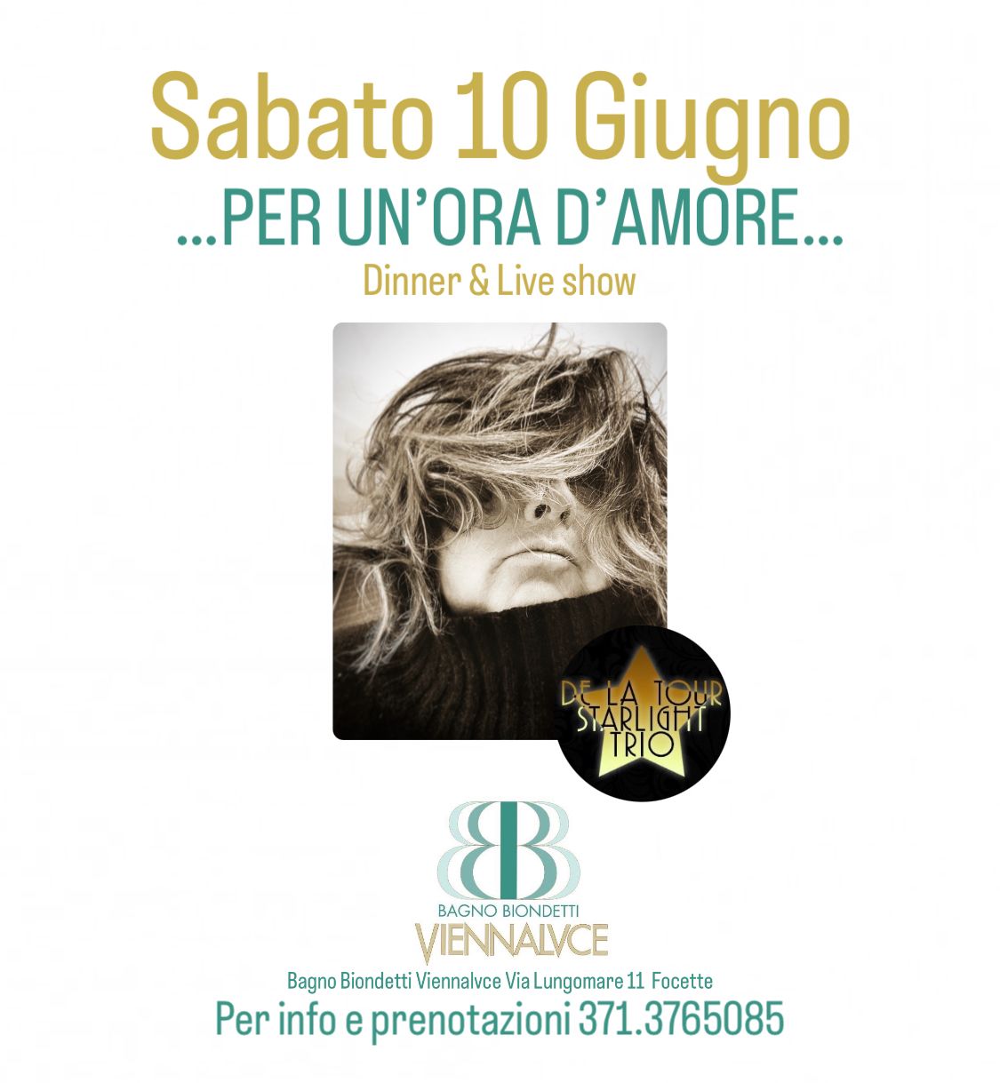 Sabato 10 giugno i De La Tour Starlight Trio continuano il loro nuovo tour in una location d’eccellenza: il Bagno Biondetti ViennaLvce a Focette, storica località della Versilia dove la musica è stata da sempre una colonna portante della storia della Paese.