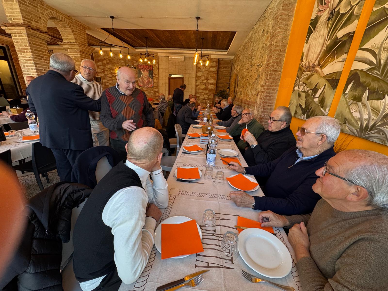 Un modo per stare di nuovo insieme rievocando il vecchi tempi quando sulle due ruote ognuno faceva del proprio meglio per far girare più possibile le pedivelle. In questo evento ognuno farà del proprio meglio per far muovere le mandibole, tra un discorso e l’altro, tra una storia e l’altra ricordando i vari appuntamenti, le tante corse, ognuna delle quali ha avuto un sapore diverso, unico, irrepetibile. Tanta anche la commozione dei “vecchietti terribili”, nome del gruppo social che, grazie alle moderne tecnologie, tiene vicini e uniti questi amici della bicicletta. Dicevamo commozione ritrovarsi ogni anno insieme e, gli anni passano per tutti ma non lo spirito agonistico di una lunga vita passata sulla bicicletta che li mantiene e li ha mantenuti particolarmente giovani. Non c’è che dire, la bicicletta aiuta a rimanere giovani o magari a invecchiare bene, come tutti gli sport. Proprio per questo si autodefiniscono terribili questi vecchietti, che poi tanto vecchietti non sembrano proprio visto come sono e si sono mantenuti fino a età importanti. Purtroppo qualcuno ogni anno viene a mancare ma il ricordo che ha lasciato lo mantiene vivo nei cuori dei tanti amici con i quali ha condiviso momenti bellissimi di questa lunga carriera sportiva. Insomma una vita per la bicicletta. “Fino a quando ci vediamo significa che siamo sempre vivi”; “tizio non può venire perché ha grossi problemi di salute”; “ti ricordi quando sei arrivato al traguardo a Forte dei Marmi a braccia alzate?”; “caio purtroppo ci ha lasciato il mese scorso” e così via. Queste sono le frasi che tra gli amici si ascoltano spesso girando tra i tavoli. Ma il clima che si respira è quello di vecchi antagonisti sportivi, ma grandi amici nella vita. Insomma, una grande famiglia che non dimentica di riunirsi nelle grandi occasioni, e per loro, gli amici della bicicletta, questo appuntamento annuale è una grande occasione. Un momento conviviale per rinnovare e rinfrancare quel legame che ha caratterizzato tutta la loro vita, un legame appunto di amicizia e di fratellanza sportiva. Quei legami oltre i confini e le ideologie che solo un grande sport come il ciclismo può lasciare. Dopo l’aperitivo di rito con spritz e prosecco abbinato a schiacciatine, noccioline e patatine varie, al “pronti via” la festa culinaria è iniziata nella splendida cornice del ristorante La Grotta. Si comincia con una breve introduzione del padrone di casa e organizzatore dell’evento, Stefano Bani che, dopo il ringraziamento a tutti gli intervenuti, ricordando purtroppo anche quelli che non ci sono più, ha consegnato un premio ai più giovani del gruppo con appena 39 e 19 anni. Perdonate il refuso, volevamo scrivere 93 anni per Pieroni Mario di Barga (LU) e 91 anni per Paolinelli Francesco originario di Piegaio di Pescaglia ora residente a Calci - Pisa. Come scriverebbe il collega Mentana, una maratona culinaria che non ha lasciato nessuno indietro, tutti in prima fila verso il traguardo del dolce. Un inizio alla grande la corsa nei tavoli con un abbondante antipasto di mare e di terra che ha provato a saturare i palati dei commensali, ma invano. I primi hanno fatto subito da padroni con un risotto di mare e pappardelle al cinghiale. Piatti studiati di mare e di terra per tenere nella giusta considerazione le varie estrazioni balneari e montante dei commensali. Insomma ce ne è stato per tutti i gusti, per corse in pianura ma anche per strappi collinari e montani. Anche i secondi hanno rispettato la grande idea di programmazione dell’evento, totalmente inclusivo che ha voluto premiare una grande cucina di terra e una altrettanto grande cucina di mare, rispettivamente con una grigliata favolosa di carne e una frittura di pesce da leccarsi letteralmente i baffi. Anche qui gli atleti, corridori si ma del gusto, hanno dato il massimo, sia in salita che in pianura, spazzolando e terminando le portate con una velocità invidiabile, degna del migliore slow-food mondiale. I contorni di patate hanno colmato gli eventuali vuoti saporiferi, accompagnando fino al termine le portate forti. Un dolce pan di spagna ce-cioc annaffiato con l’immancabile bollicina ha concluso la gara tra i tavoli. Gara che non ha visto vinti o vincitori. Tutti a pari merito in prima posizione con l’ambito premio conquistato proprio da tutti, quello di ritrovarsi ancora insieme dopo tanti anni. Ringraziando quel Dio che ha permesso tutto questo, ma anche quello sport, il ciclismo, che riesce a dare tanto a tutti mantenendo in salute chi lo pratica. Dopo il caffè, l’ammazza caffè e chi più ne ha più ne metta, il saluto di cuore, gli abbracci, le strette di mano in attesa del prossimo appuntamento. Dovrà passare un altro anno di attesa, ma passerà. Nella speranza di ritrovarsi tutti, con meno perdite possibili, senza perdere le ruote, ma tutti in quel magnifico gruppo dei “vecchietti terribili” che ha fatto e fa la differenza. I social nel frattempo faranno il loro lavoro mantenendo quel contatto senza il quale sarebbe stato difficile organizzare questo evento. Un grazie va alla mente di questi incontri, l’amico Stefano Bani e….. arrivederci al 2025.