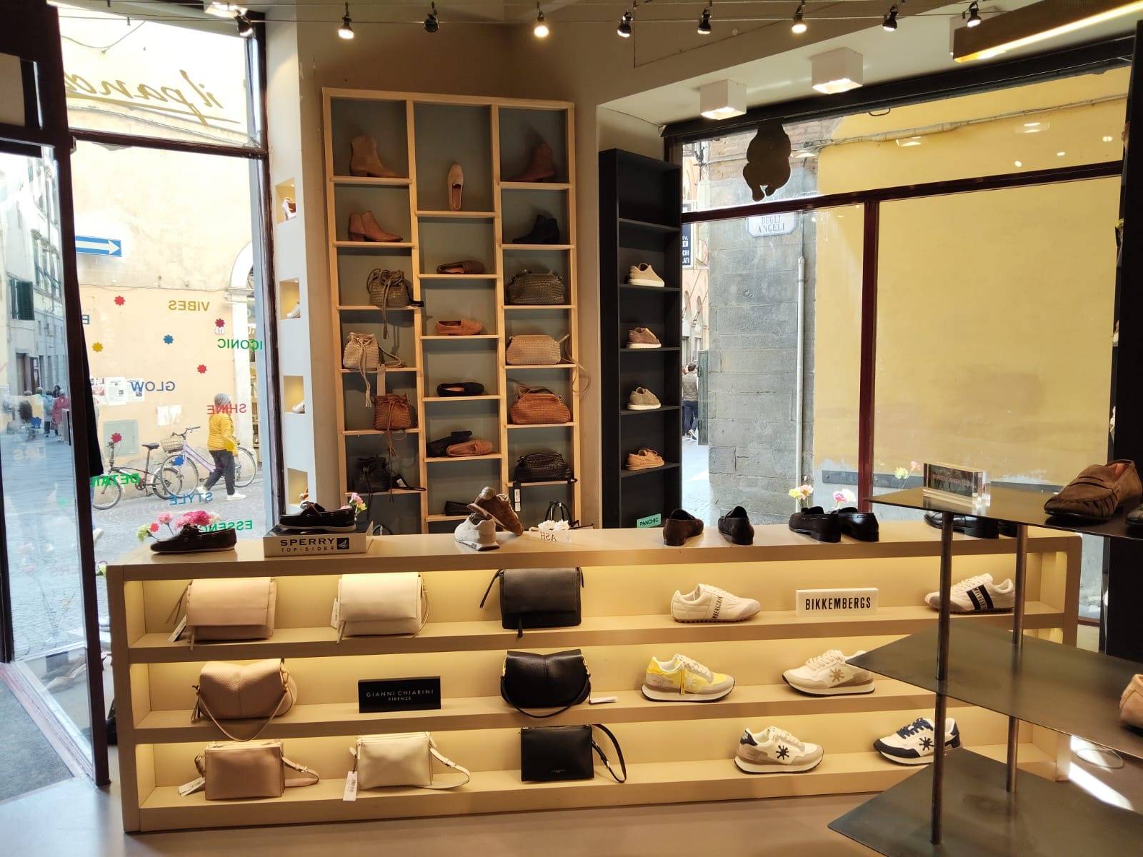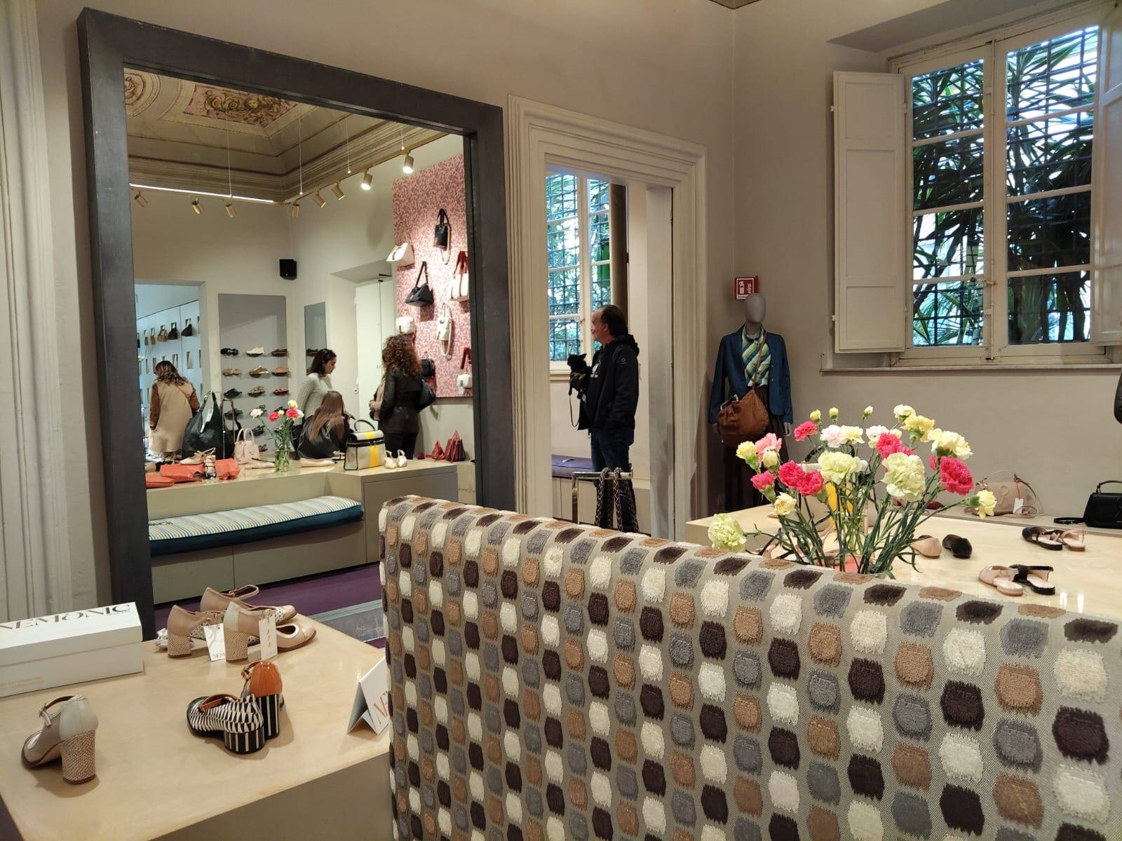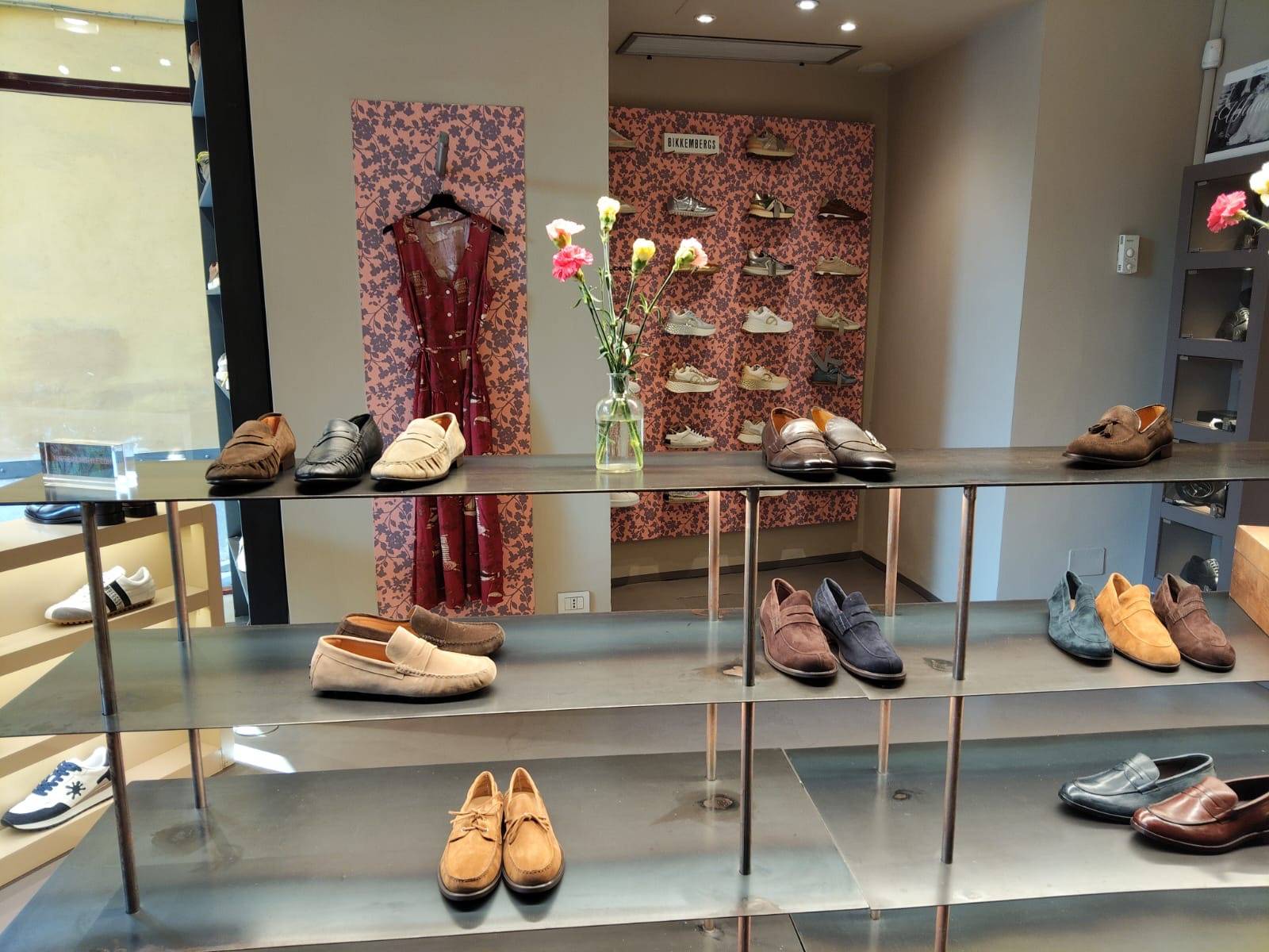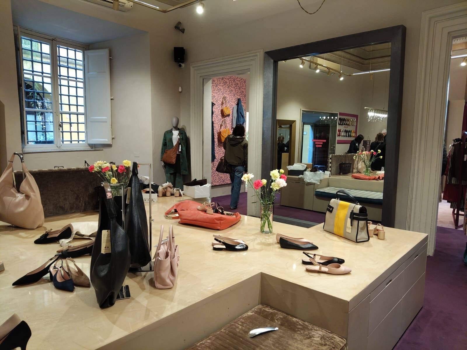 “Ci siamo appoggiati allo studio GAA – ha affermato il responsabile del negozio - lo stesso che realizzò lo spazio vent’anni fa. Abbiamo fatto un restyling soprattutto dell’ultima sala, dove abbiamo razionalizzato gli spazi, ricavando due camerini per la prova dei capi di vestiario. Il rinnovamento è focalizzato sullo spazio dell’abbigliamento, ma la parte calzaturiera non ne risente. Rimaniamo comunque un negozio di scarpe, con la nostra consueta offerta molto capillare in svariati stili. La tendenza continua ad essere più o meno la solita. Abbiamo aggiunto un tocco di floreale, per riprendere le nostre buste e storiche shop bags, e con ciò abbiamo realizzato una carta da parati personalizzata che è presente nei pannelli espositivi. Questo è il nostro filo conduttore, ma possiamo comunque affermare che tutto rimane fedele alla nostra immagine”.