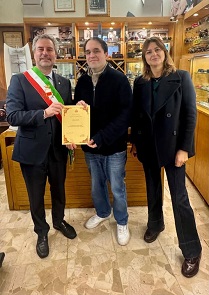 Il sindaco Pardini con Paola Granucci per congratularsi con l'Ottica Bianchi