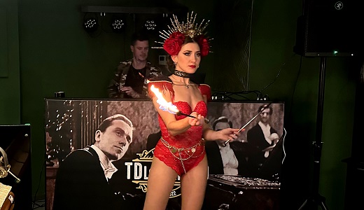 A dare il via al lungo calendario di eventi che il locale ospiterà, è stato ieri sera il Circo Nero, con uno show che ha visto protagoniste Daniela Momcheva, artista poliedrica, maestra nei giochi di fuoco e nel visual e Honey Anarkos, performer nell'arte del bourlesque che hanno incantato tutti i presenti con il loro spettacolo. Ad aprire la serata, le musiche di Ennio Morricone suonate dal pianista ucraino Petr Yanchunk, pluripremiato in concorsi internazionali, laureato in pianoforte all'Università di Kharkov e all'istituto Superiore di Studi Musicali Luigi Boccherini di Lucca. Successivamente, a salire in consolle è stato il noto Dj Francesco Follati, che ha saputo spaziare tra diversi generi e tracce, dando vita a una atmosfera intensa e coinvolgente.