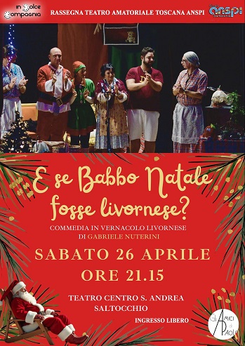 Nell'ambito della rassegna teatrale Toscana Anspi 2025, organizzata dal Circolo Anspi di Saltocchio in collaborazione con la compagnia teatrale In Dolce Compagnia e dedicata alle compagnie teatrali amatoriali, sabato 26 aprile 2025 alle ore 21.15 al teatro del Centro S.Andrea di Saltocchio (LU), la compagnia teatrale "GLI AMICI DI PAOLO" di Livorno metterà in scena la commedia comica in vernacolo livornese "E SE BABBO NATALE FOSSE LIVORNESE?". L'ingresso è libero.