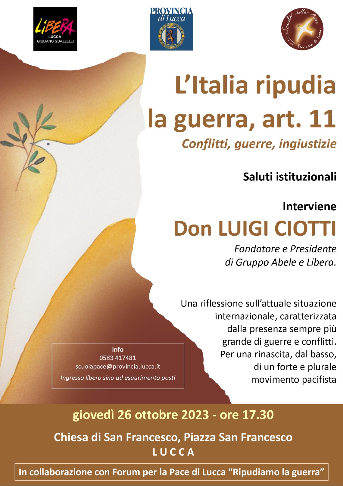 Legalità e pace: doppio appuntamento per don Ciotti, la mattina con le scuole e il pomeriggio con la cittadinanza
