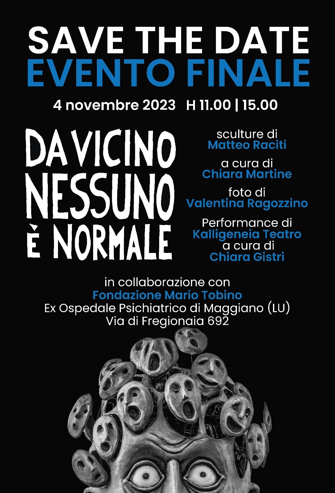 Da Vicino Nessuno è Normale è un viaggio introspettivo e pieno di emozioni, che costringe a guardarsi dentro e a parlare con la propria parte più intima. Una mostra da visitare che fa tremare un po' il cuore per farci uscire dall'indifferenza. La mostra, in collaborazione con la Fondazione Mario Tobino, è patrocinata dalla Regione Toscana, la Provincia di Lucca, il Comune di Viareggio e la Fondazione Carnevale di Viareggio. E' stata sostenuta da Movimenti Artistici Trasversali. Partner dell'evento Mag Arte, Intrecciarte Art Gallery, Casa Editrice Strade Bianche e RecuperArti.