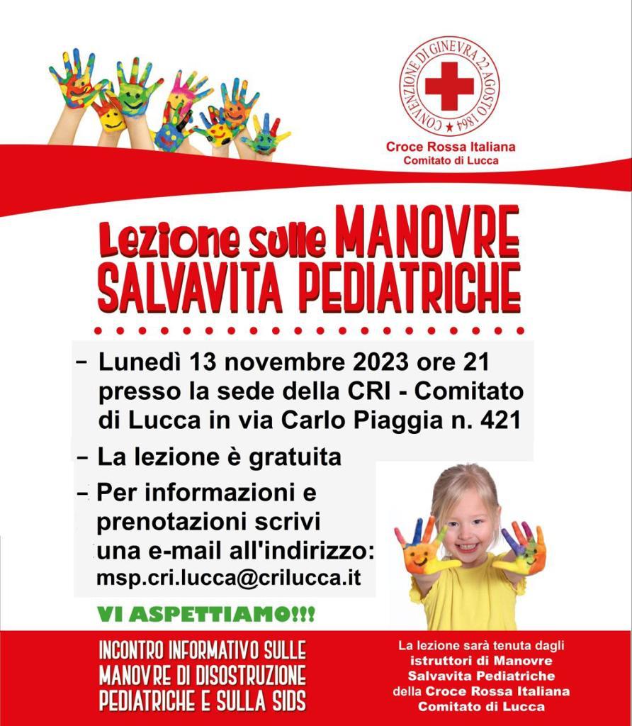Lunedì (13 novembre), presso la nuova sede del comitato in Via Carlo Piaggia 421, si terrà la lezione gratuita sulle manovre salvavita pediatriche organizzata dalla Croce Rossa Italiana del comitato di Lucca.