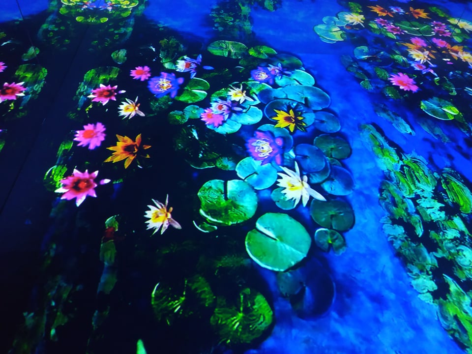 Sotto la direzione di Marianne Mathieu, storica dell'arte e direttrice scientifica del museo Marmottan Monet, si è dato vita ad una mostra in cui il fattore esperienziale di immersione, prende il visitatore sin dall'ingresso: superato il varco, si è letteralmente circondati di luce e colori, di suoni, di immagini che richiamano ruscelli, il suono della natura, fruscio di foglie, la freschezza delle ninfee, quelle che Monet ritrasse in ben duecentocinquanta opere, nella casa di Giverny; qui il visitatore stacca con il mondo esterno, inizia un viaggio, fatto di emozioni, sensazioni, puro godimento per gli occhi e lo spirito.